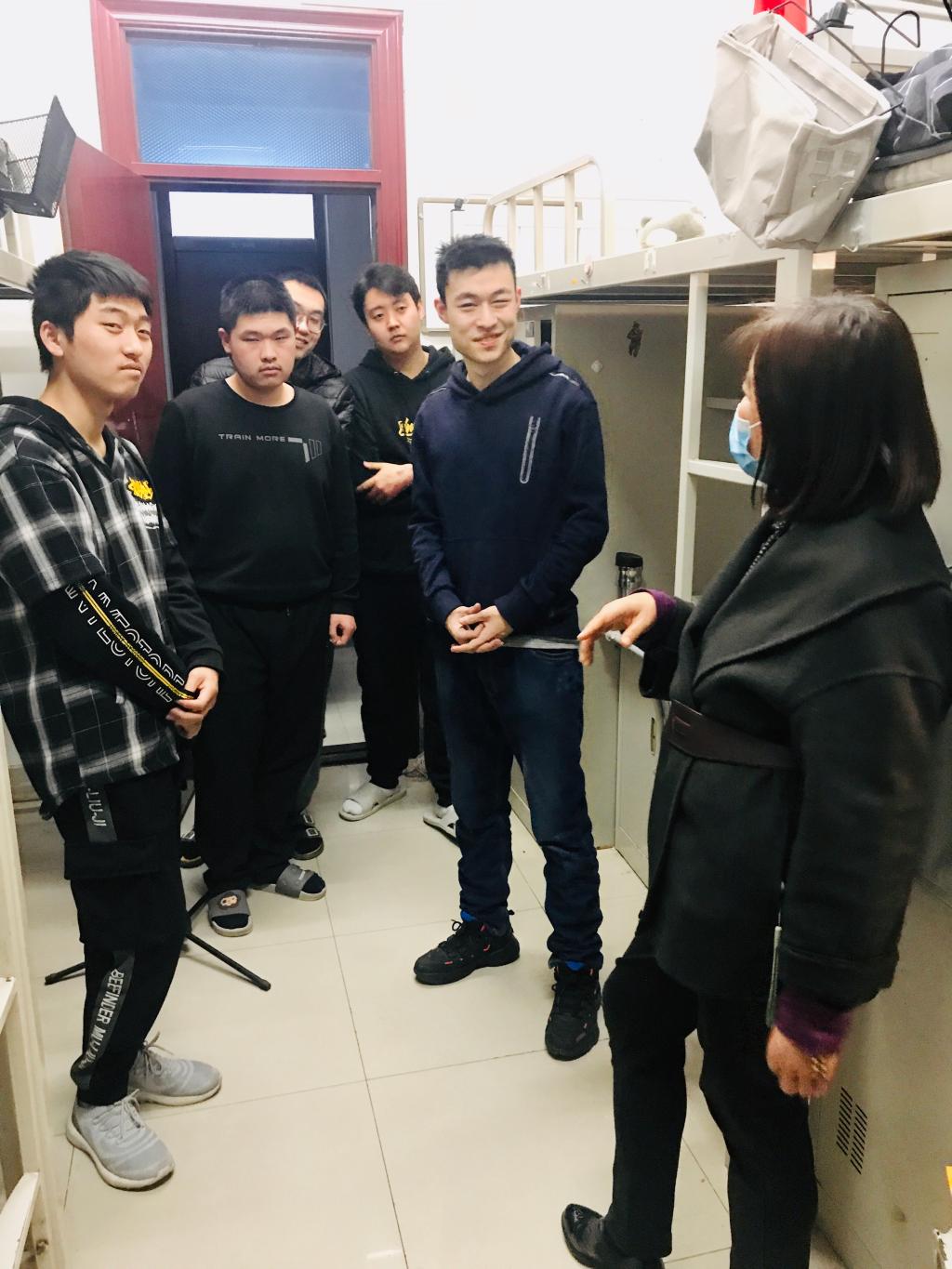 为进一步详细掌握在校学生的思想动态和学习生活情况,确保疫情期间各项工作的安全、平稳开展,3月22日晚间,机电工程学院党总支书记杜彤老师带领辅导员、班主任及技能大赛指导教师,走访学生寝室,慰问疫情期间返校参赛和实习的学生。
