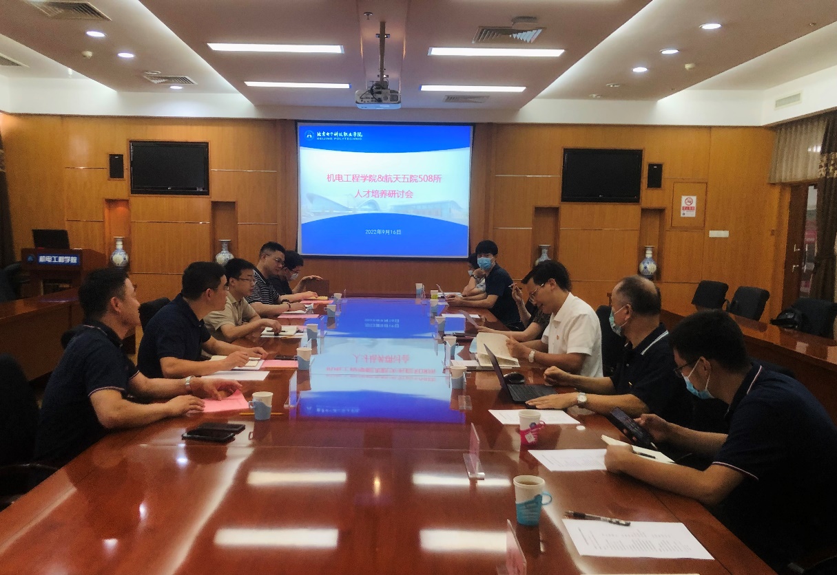 陈小荣介绍了学校、学院的基本情况,并对机电专业群与航天产业以往的合作以及学校SCI人才培养体系的特色做法进行了详细介绍。黄敦华从岗课赛证研创等方面为切入点,表示航天产业是制造业的高端产业,希望能与508所进行校企合作,在合作模式、人才培养、实训基地建设、兼职教师资源完善等方面发表了看法,并提出了两点意见:一是尽快去508所回访,尽快将合作落地;二是现在学院正在修订新版人才培养方案和积极谋划未来智能制造工程技术专业职业本科建设,希望508所能够参与进来,多多出谋划策。