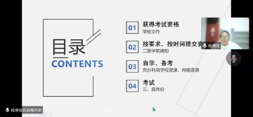 交流会上,优秀毕业生从获得考试资格、提交资料、自学备考、考试等方面详细介绍了专升本的相关事宜,对专升本的文件进行了解读,对英语课、专业课的考试大纲进行分析,并分享了自己在备考过程中的经验和技巧。