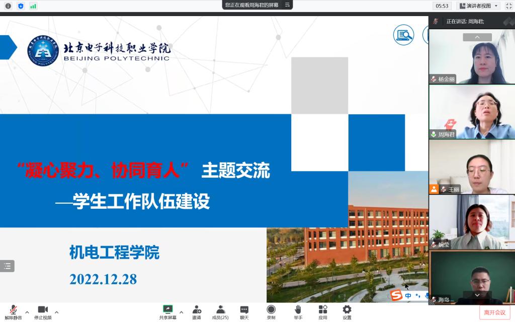 为进一步加强学生工作队伍专业化建设,不断提升育人水平,机电工程学院于2022年12月28日召开题为“凝心聚力 协同育人”学生工作研讨会,学院领导班子、系部主任、党支部书记和全体辅导员、班主任参加会议。