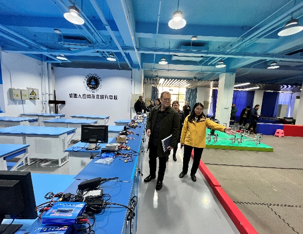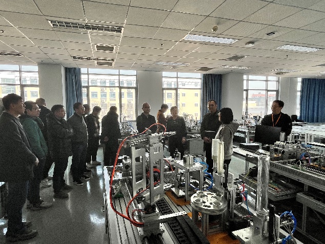 北方工业大学电气与控制学院教师深入机电工程学院课堂,分别听取了庄严老师的《PLC控制技术综合实践》和邱钊鹏老师的《电子技术综合实践》两门课程的现场授课,参观了学院先进制造实训基地,走进理实一体化教室、学生技能大赛训练现场和机器人应用技术研究中心,深入了解机电专业群学生培养资源。