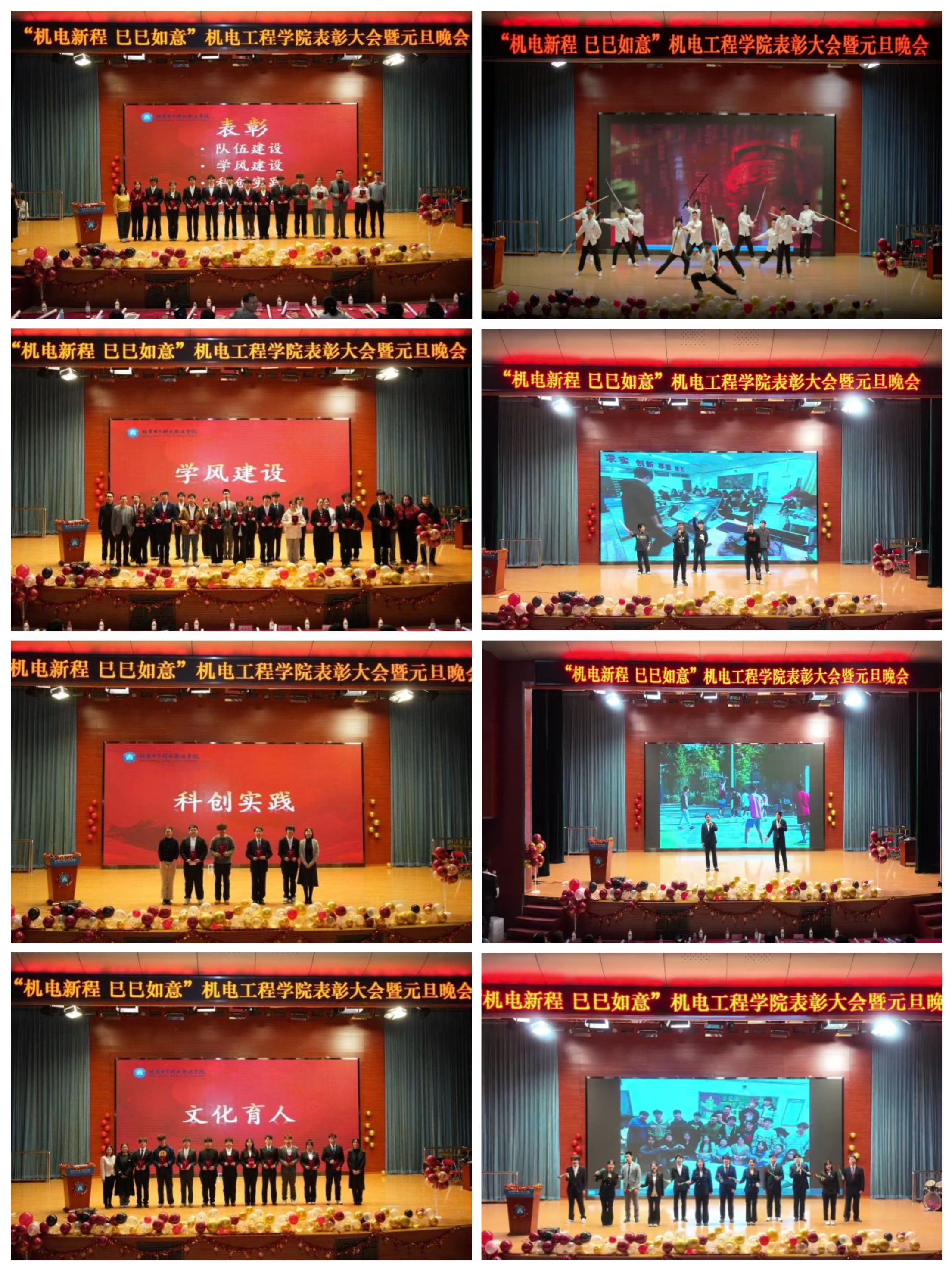 新岁序开,共赴新程。为树立更多身边榜样、激励更多学生向榜样学习,2025年1月2日晚,“机电新程 巳巳如意”机电工程学院学生表彰大会暨元旦晚会于图书馆报告厅拉开帷幕。学院领导班子,党委学工部、校团委教师,学院全体班主任、辅导员、教师代表和350名学生参加。本次活动由王心睿、杜宏宇、李萌、王梓安四名师生联合主持。