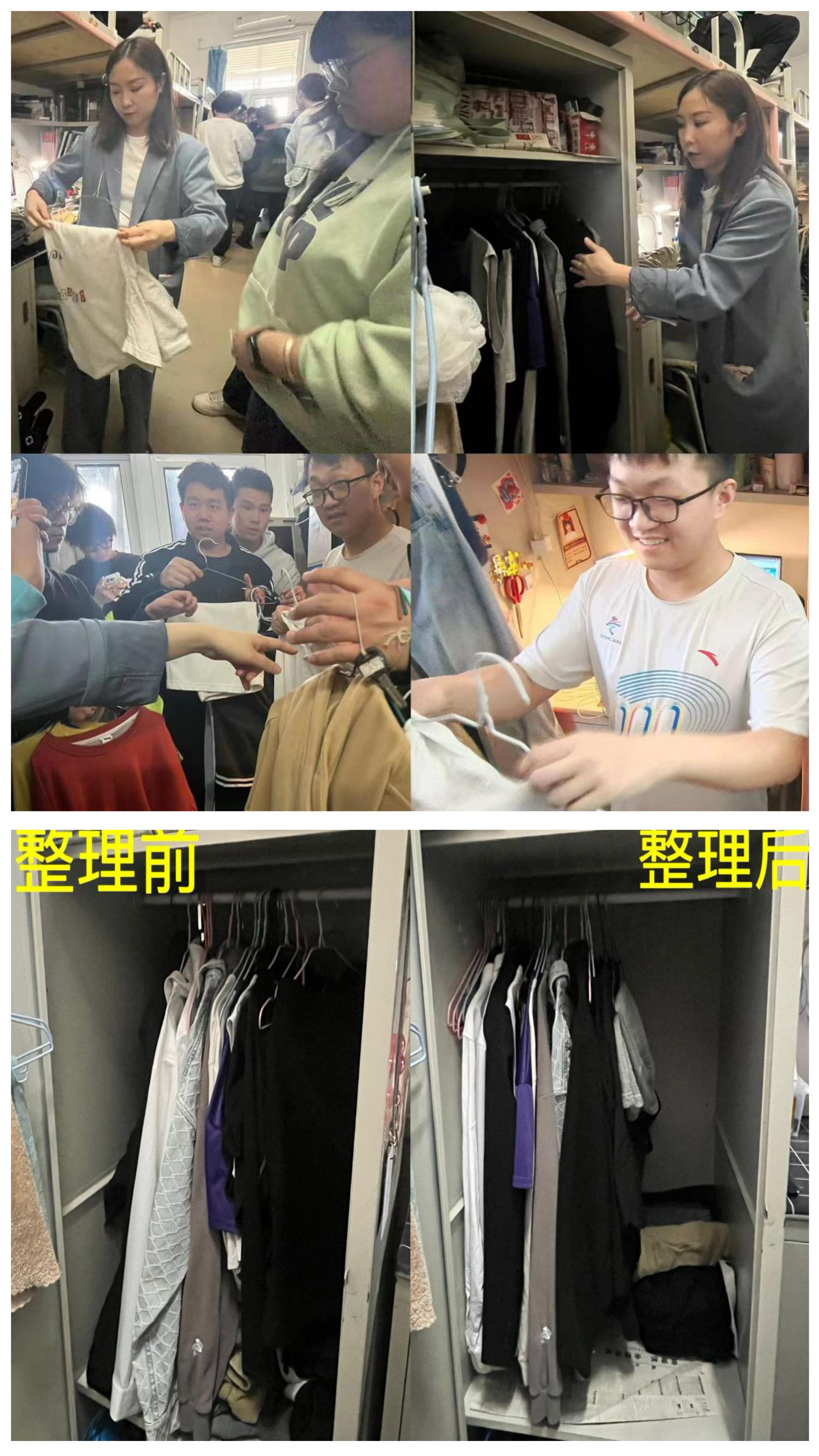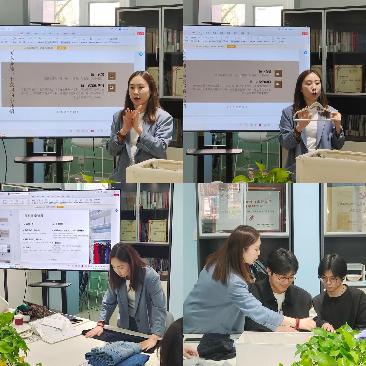 宿舍,这个狭小而又温馨的空间,是校园生活的重要组成部分。衣橱作为宿舍中的“储物大户”,其整洁程度直接影响到环境和舒适度。3月29号下午,机电工程学院《软技能提升》课程第二课——“永不复乱的衣橱整理术”在党团工作站如期开展。辅导员和学生代表一同参与。