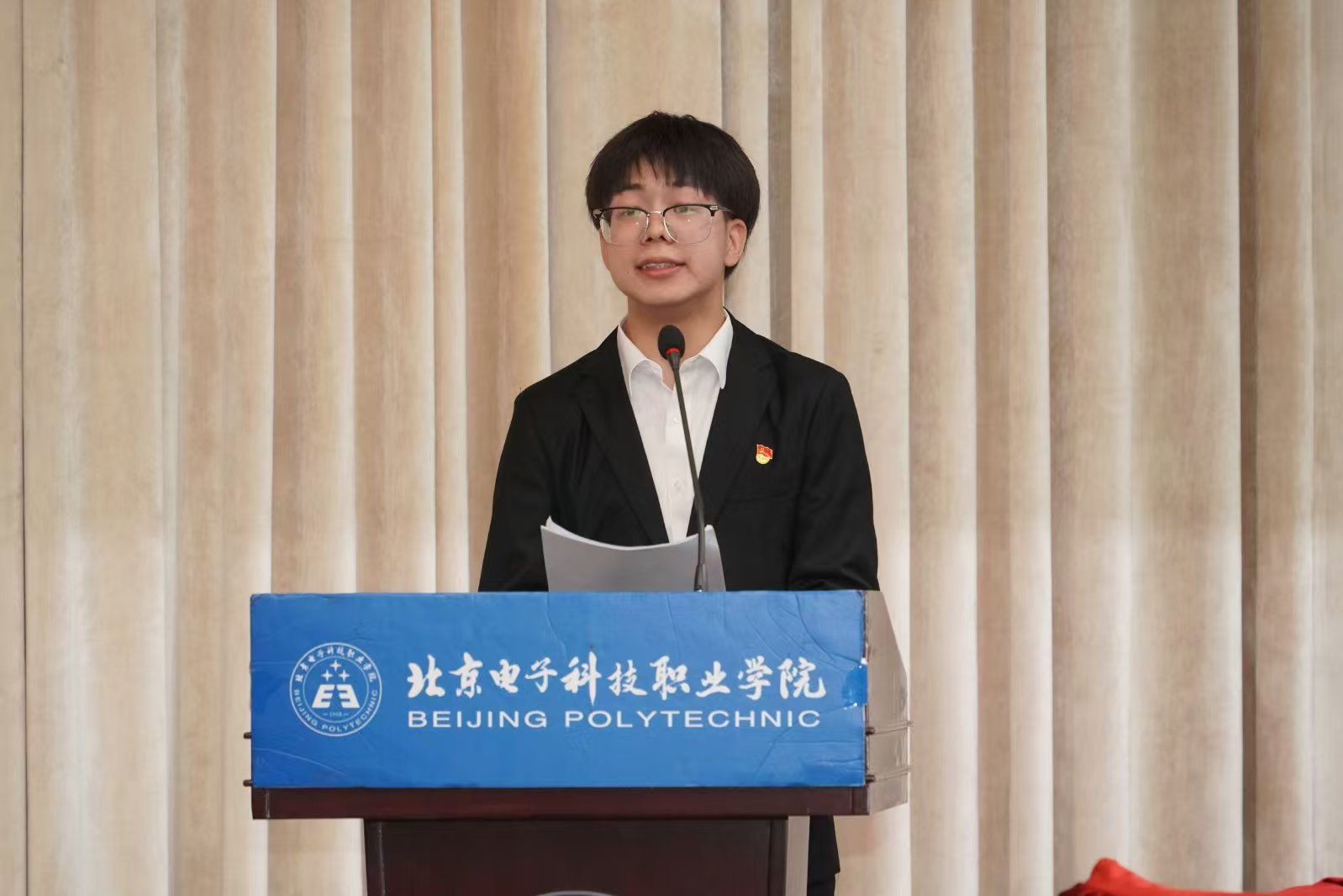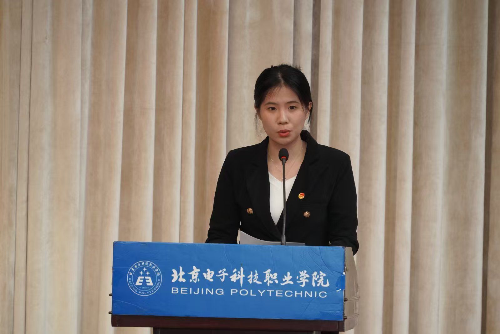 周海君代表学院党总支对本次大会圆满召开表示祝贺。她指出,新一届学生会要以全心全意为全体同学服务为宗旨,立足于增强政治性、先进性、群众性,充分发挥桥梁和纽带作用,围绕学院中心工作,全面深化组织改革,服务广大同学,立大志、明大德、成大才、担大任,让青春在新时代火热实践中绽放绚丽之花,为建设首善标准、中国特色、世界一流的高水平技能型大学贡献青春力量。