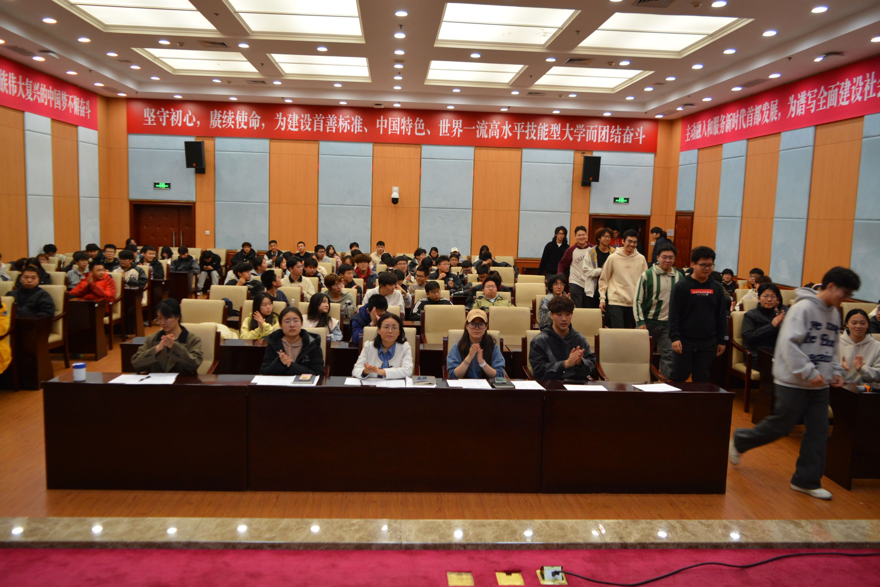 为纪念一二·九运动,激发新时代大学生爱党、爱国情怀,进一步丰富校园文化生活,增强班级凝聚力,促进学生全面发展,机电工程学院于11月18日举办“铭记历史,唱响未来”——纪念一二·九运动新生红歌合唱比赛。党总支副书记周海君、辅导员王心睿、郭香凝、朱莉担任比赛评委。