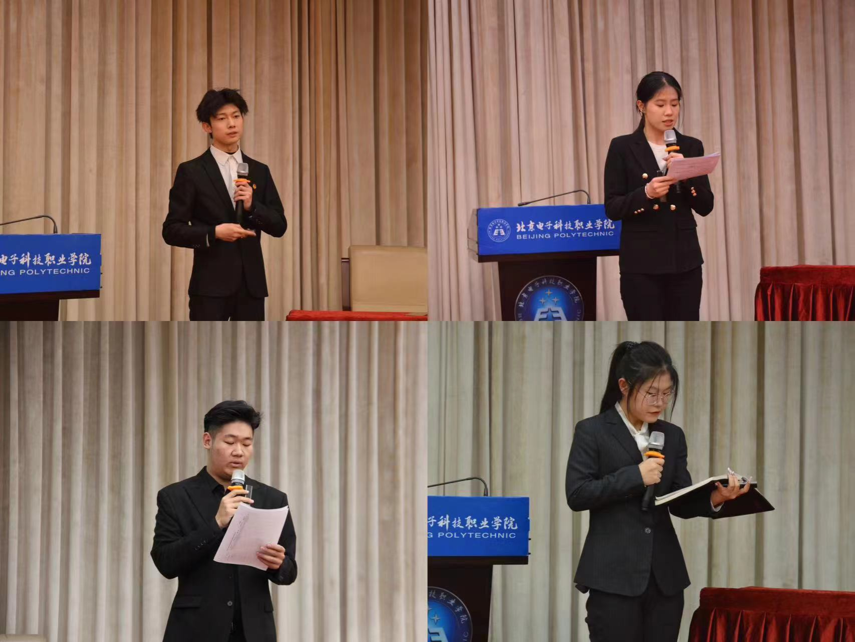 2024年的寒假社会实践活动主题广泛多样,内容丰富充实,既有重走百年党史之路探访红色记忆,也有扎根社区奉献爱心;既有在首都图书馆、家乡政务部门的“青砺基层”实践,也有远赴海外传播职教中文的探索。21名团队负责人依次上台汇报展示,从前期策划、实践执行、媒体宣传到成果总结,娓娓道来实践的过程和收获,彰显出机电青年的行动力与责任感,赢得了现场观众的阵阵掌声。