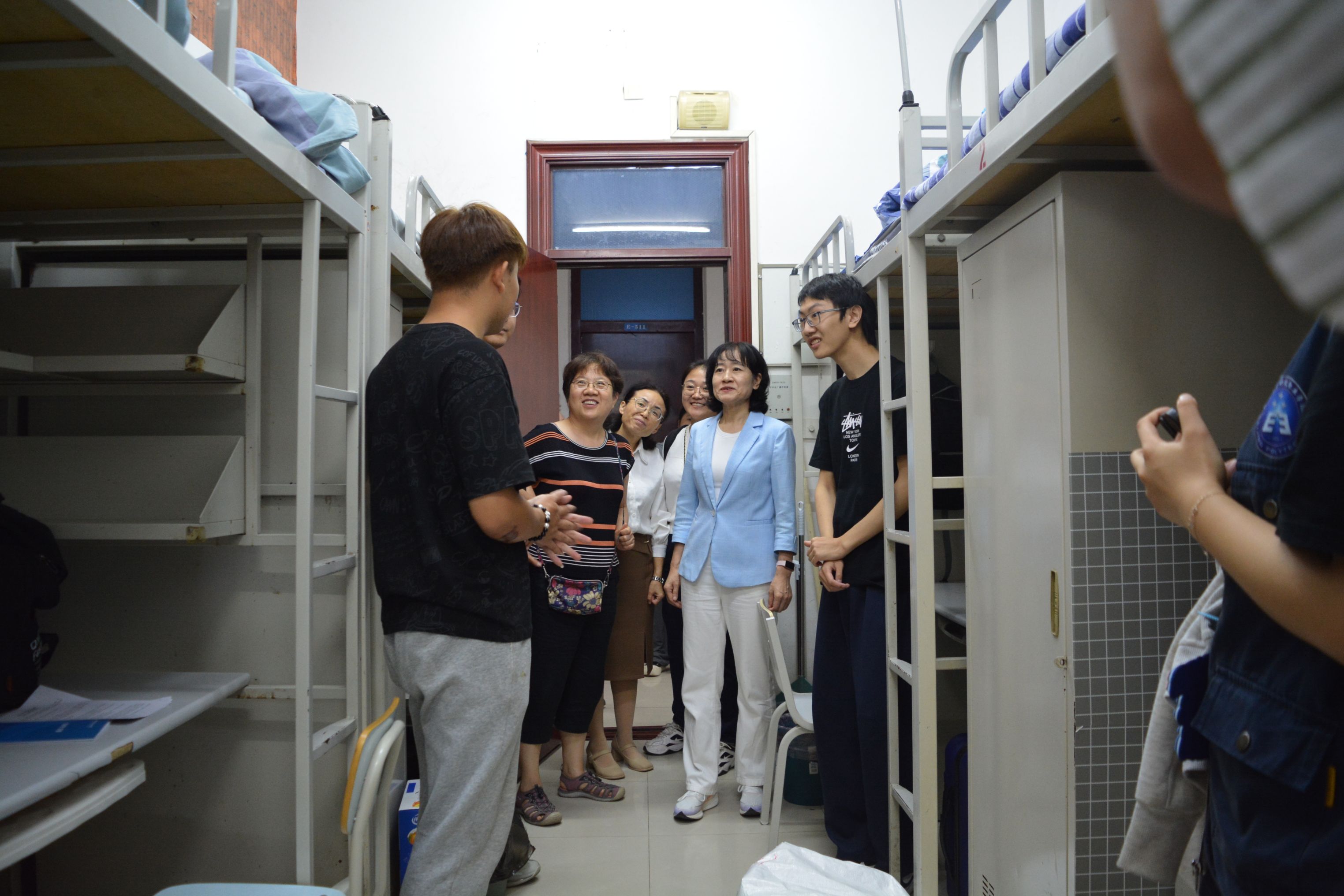 下午,学院领导、辅导员、新生班班主任以及班助走访了2024级新生宿舍,了解同学们的生活近况以及对宿舍环境的满意程度等,老师们还细心提醒同学们要注意安全用电和卫生,鼓励新生尽快适应大学生活,养成良好的作息习惯,珍惜学习时光,为未来发展打下坚实基础。他们表示,希望同学们珍惜宝贵的学习机会,用好学校提供的教学平台和教育资源,施展所长,在青春的新篇章中砥砺前行。