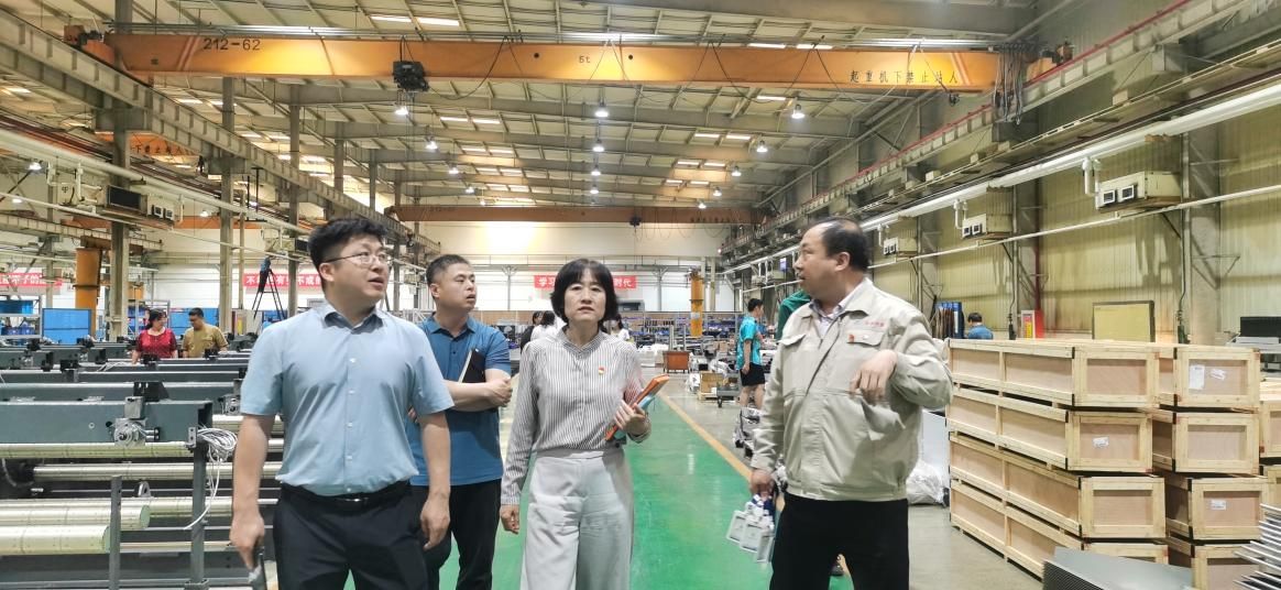 杨金丽一行首先参观了中丽制机公司发展历程展览,了解公司的发展历程、产品和企业文化,随后深入企业厂房中的热辊、卷绕机、零部件加工等生产车间和科技展厅,详细了解公司生产情况、发展情况及各岗位人才需求情况。