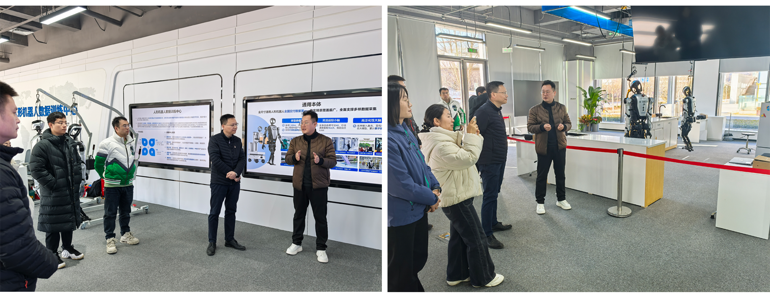 会前,双方一同参观了人形机器人数据训练中心,观摩了工业装配、家居清洁、特种作业等不同应用场景下人形机器人数据采集处理、标注审核、训练优化等流程,为机器人技术专业课程体系建设与实训基地建设等方面拓宽了思路。下一步,机电工程学院将持续推动合作落地见效,不断提升人才培养质量,切实提升专业服务产业发展的能力与水平。