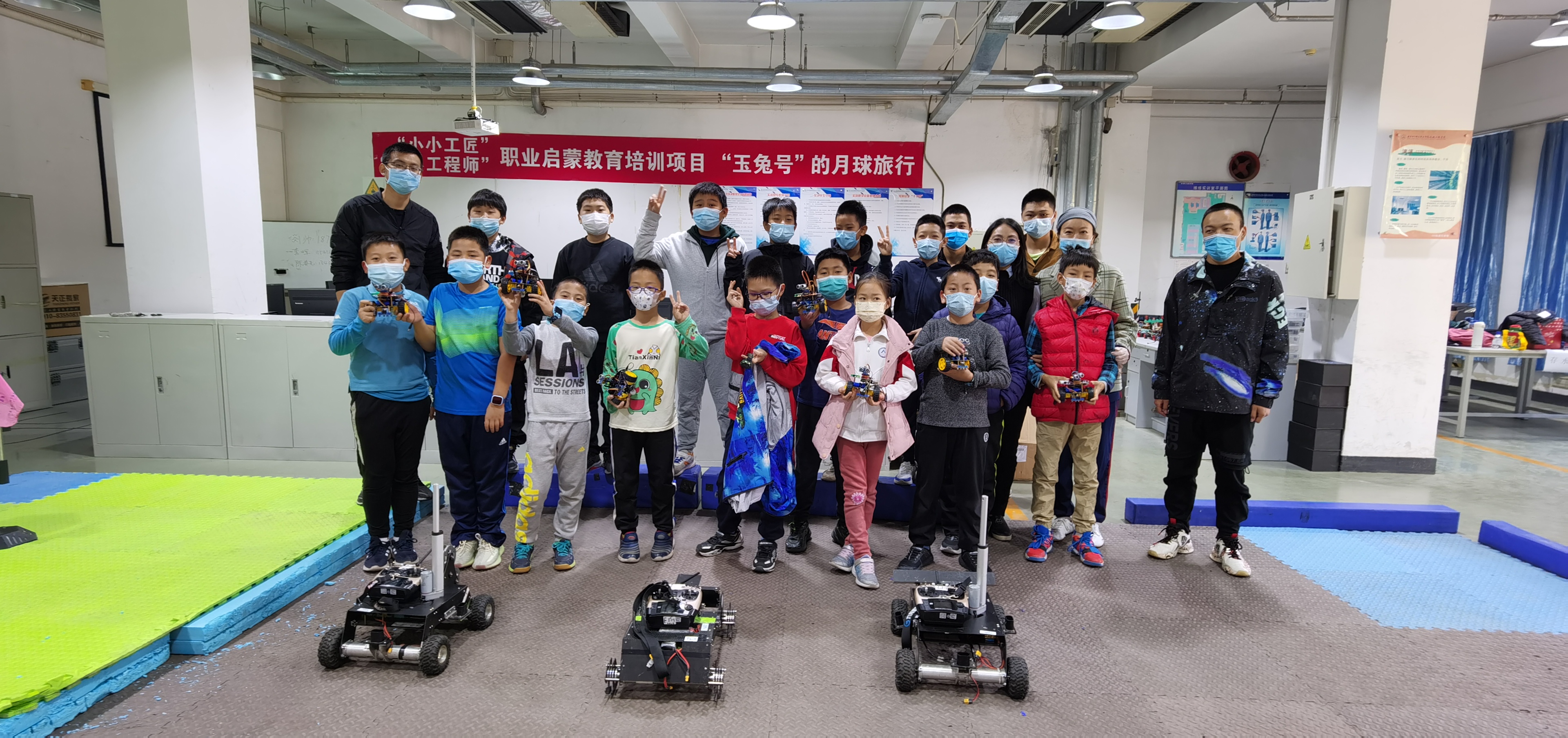 为保证“小小工匠”、“小小工程师”职业启蒙教育培训项目的顺利举行,机电工程学院认真准备,在陈小荣院长的亲自指挥下,陈春先、李晖、刘帅三位老师经过近半个月的认真筹划和统筹安排,以融合诸多技术的机器人技术以及中国首辆月球车“玉兔号”灵感,以智能循迹避障机器人为平台,开展“玉兔号”的月球旅行培训项目。