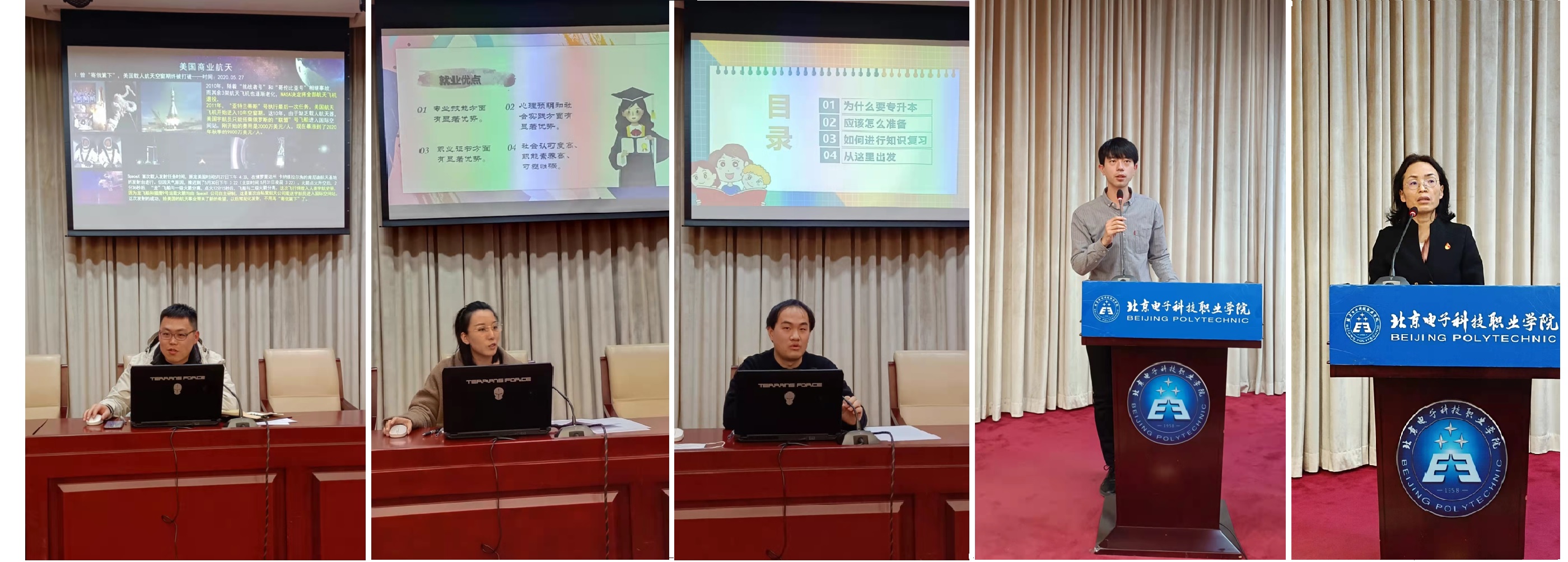 王健平,从电科院升入北京联合大学,毕业于机电工程专业,目前在海淀环卫中心任部门经理一职。他围绕为何要专升本、如何专升本备考、如何做好现在三方面,通过大量实例由浅入深地进行了分析,并分享了自己的经验。通过自己的努力告诉同学们:“为了心中的理想,选择了专升本,就必须坚持下去。要珍惜电科院高端的硬件设施、优秀的教师队伍和和谐的校园环境,做有意义的事情!”