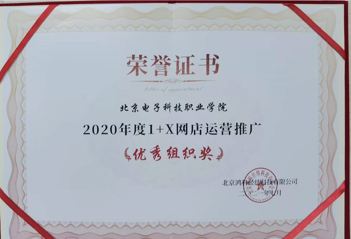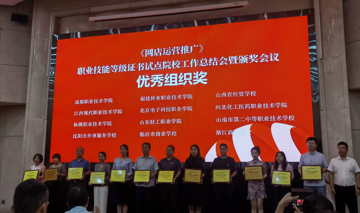 2021年7月16日,全国职业院校电子商务类专业群“三教”改革推进与创新培训会如期召开,本次会议由中教畅享(北京)科技有限公司和北京鸿科经纬科技有限公司共同举办。自1+X网店运营推广试点工作开展以来,经济管理学院电子商务专业在1+X网店运营推广职业技能等级证书工作中积极参与,规范培训和考试流程,各项工作井然有序,稳步推进,在各个环节中表现优异,在本次院校评选中代表学校被评为“优秀组织奖”。