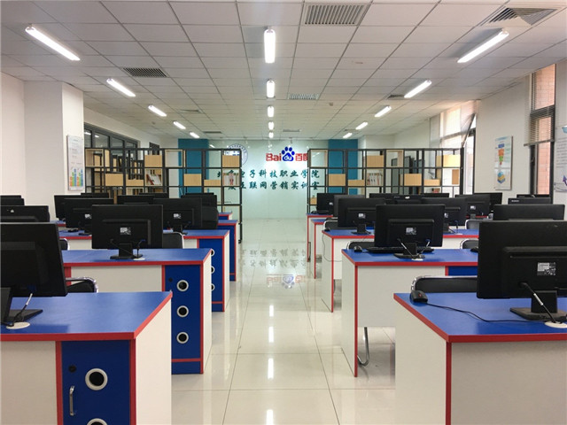 互联网营销实训室建于2016年,是与百度合作共建的基于百度后台凤巢系统的网络营销实训室,并于2016年11月正式挂牌。通过使用真实的百度后台营销系统,学生们可以直接体验从企业营销意图到百度关键词方案设计,再到真正的互联网推广的全流程。整个流程基于真实的企业需求,经过这样的训练,学生能够掌握真正的百度后台工作方法,因此实现了从课堂到企业岗位的自然衔接,用尽可能少的时间适应企业的工作节奏和强度。学生也可以考取百度认证互联网行业职业资格,直接扣响互联网营销的就业之门。
