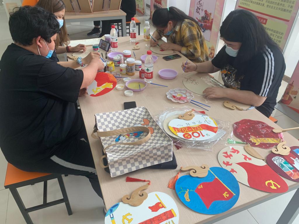 活动主要内容包括画扇面、画布袋、剪纸和积木拼装等。在活动现场,同学们兴趣满满,用绚丽的色彩绘制一幅幅美丽的画卷,表达对党、对祖国的无限热爱与祝福。