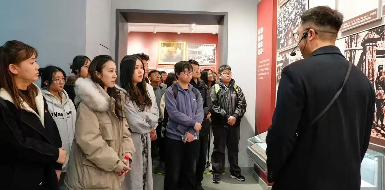 师生们在李大钊烈士雕像前鞠躬后,依次献上沾露的黄菊。陈小雅带领党员重温入党誓词,铿锵誓言回荡在陵园上空。随后,师生们在李大钊烈士革命事迹陈列室中展开微党课学习。馆内的珍贵史料,生动讲述了李大钊同志“铁肩担道义,妙手著文章”的革命人生。从他早年求学海外,积极探索救国救民的真理,到回国后投身新文化运动,高举赤旗,播撒革命的火种……大家通过观看《青春》《我的马克思主义观》等手稿复刻件、狱中自述等展陈,深刻感悟李大钊同志作为中国共产主义运动先驱者的崇高理想和视死如归的革命精神。
