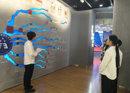 在校史馆,学生发展对象化身讲解员,以同龄人的视角带领同学们回顾学校发展历程。从建校初期的办学初心,到新时代产教融合的丰硕成果,一个个生动的展板、一件件珍贵的展品,让同学们深切感受到学院"立足专业、服务社会"的育人理念,深刻认识和理解了办学精神的内涵,也更加明确了自身的职业发展方向。