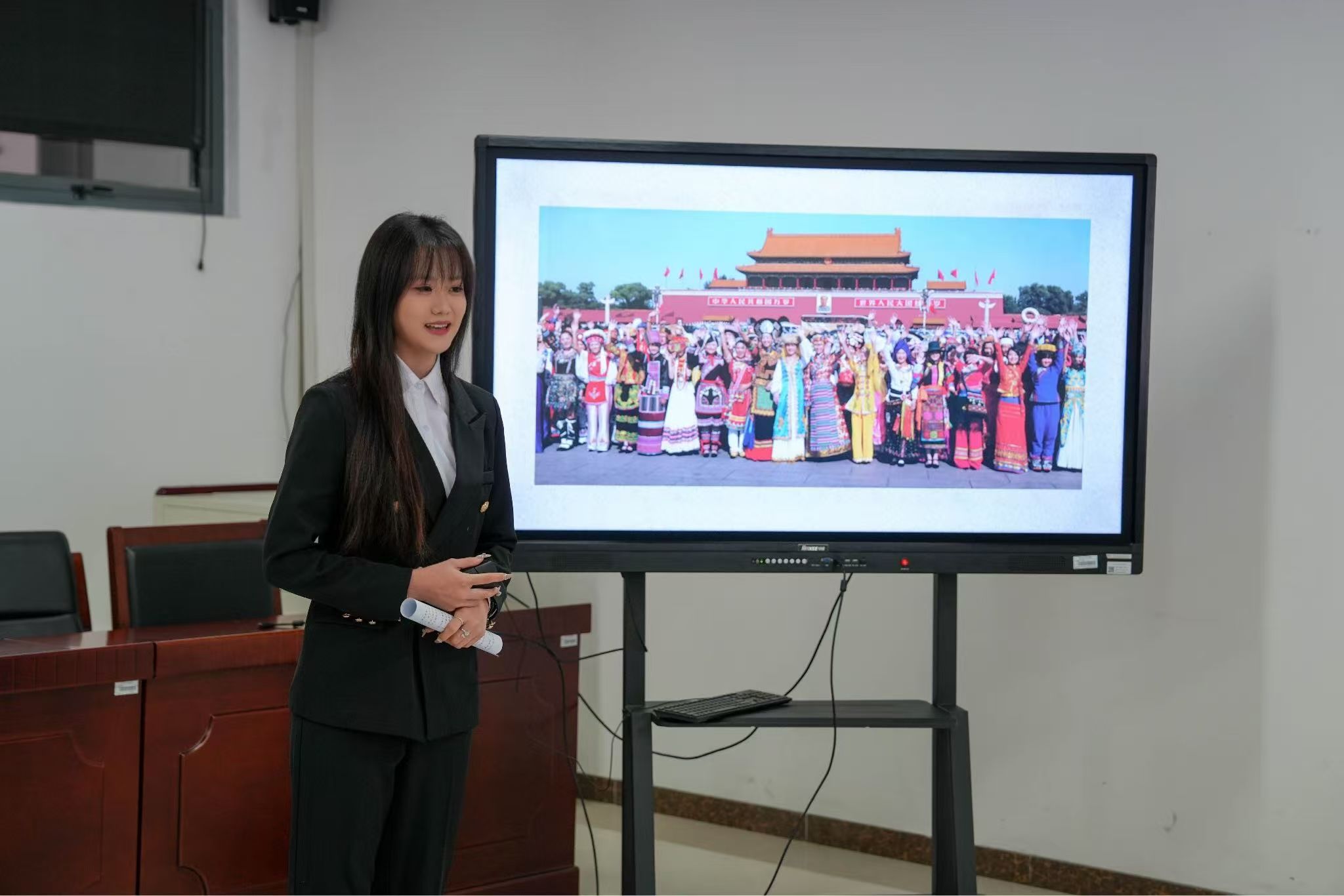 黄瑛琪同学以“共筑中国梦,民族情更浓”进行演讲,展现了中国梦下各民族携手奋进,如石榴籽般紧密团结在一起的美好画面。