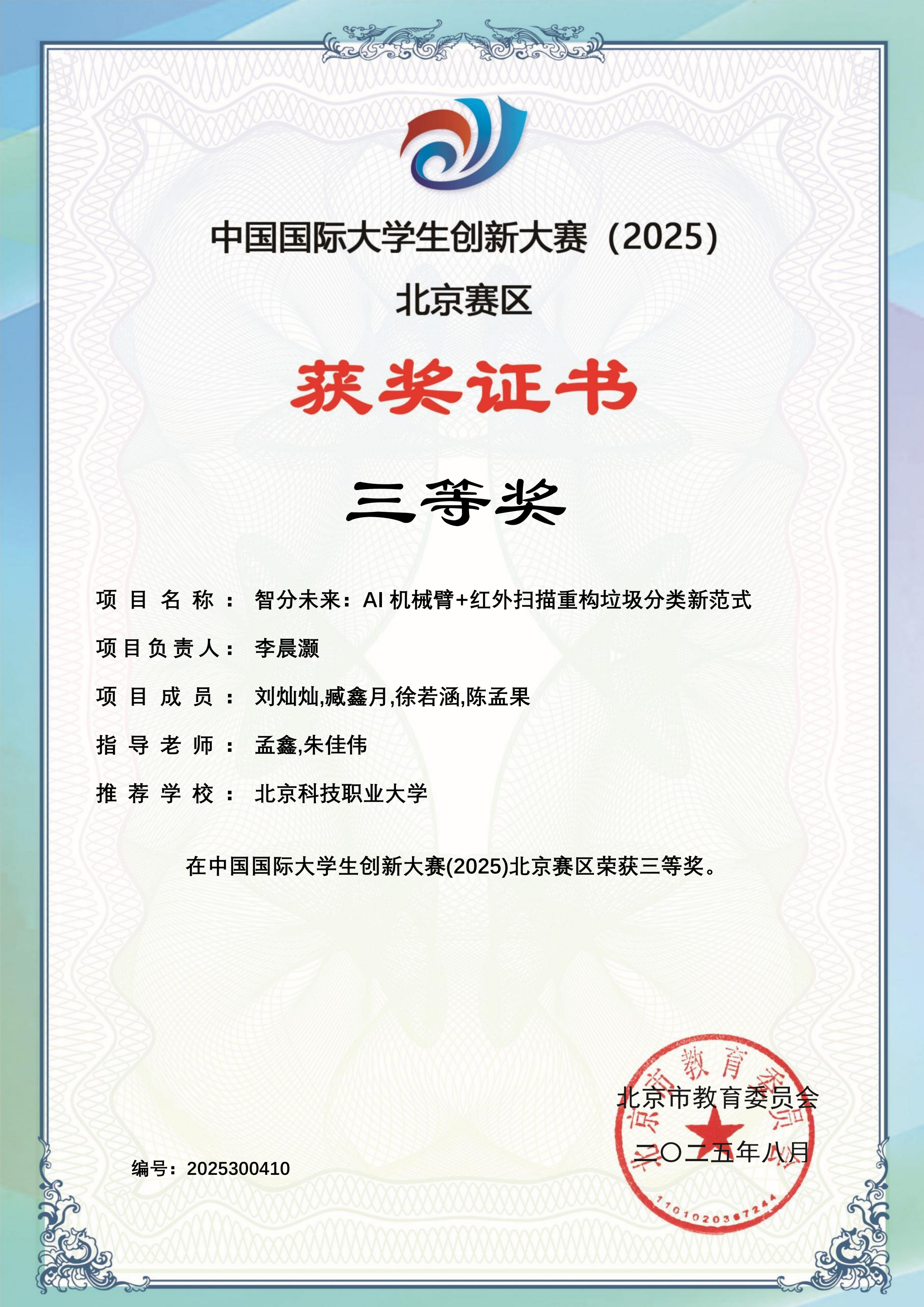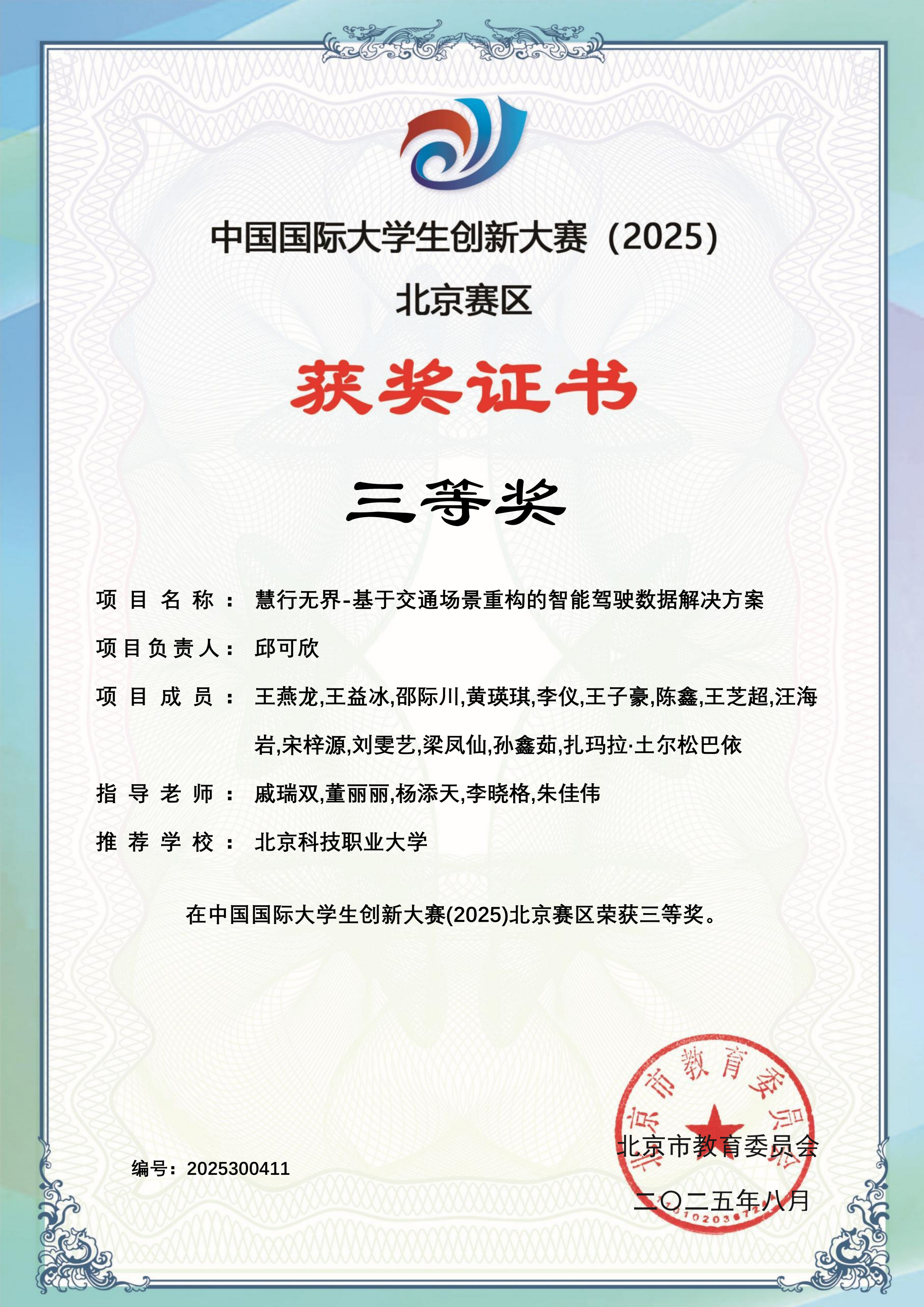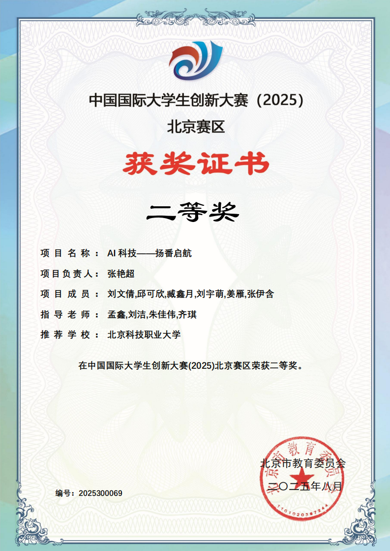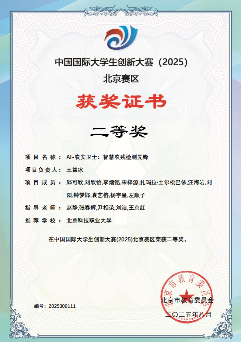 下一条:中国国际大学生创新大赛(2025)校赛获奖证书
