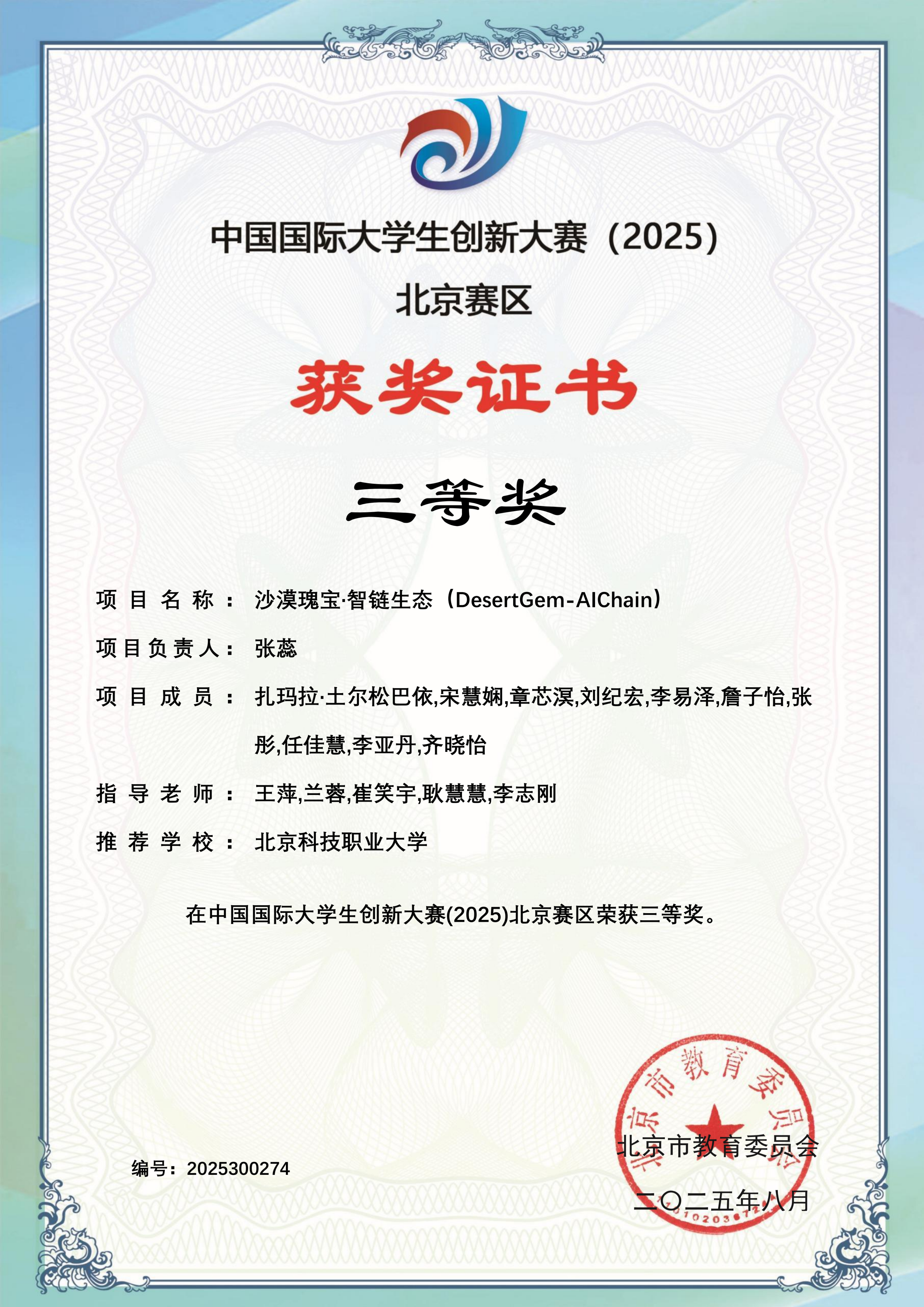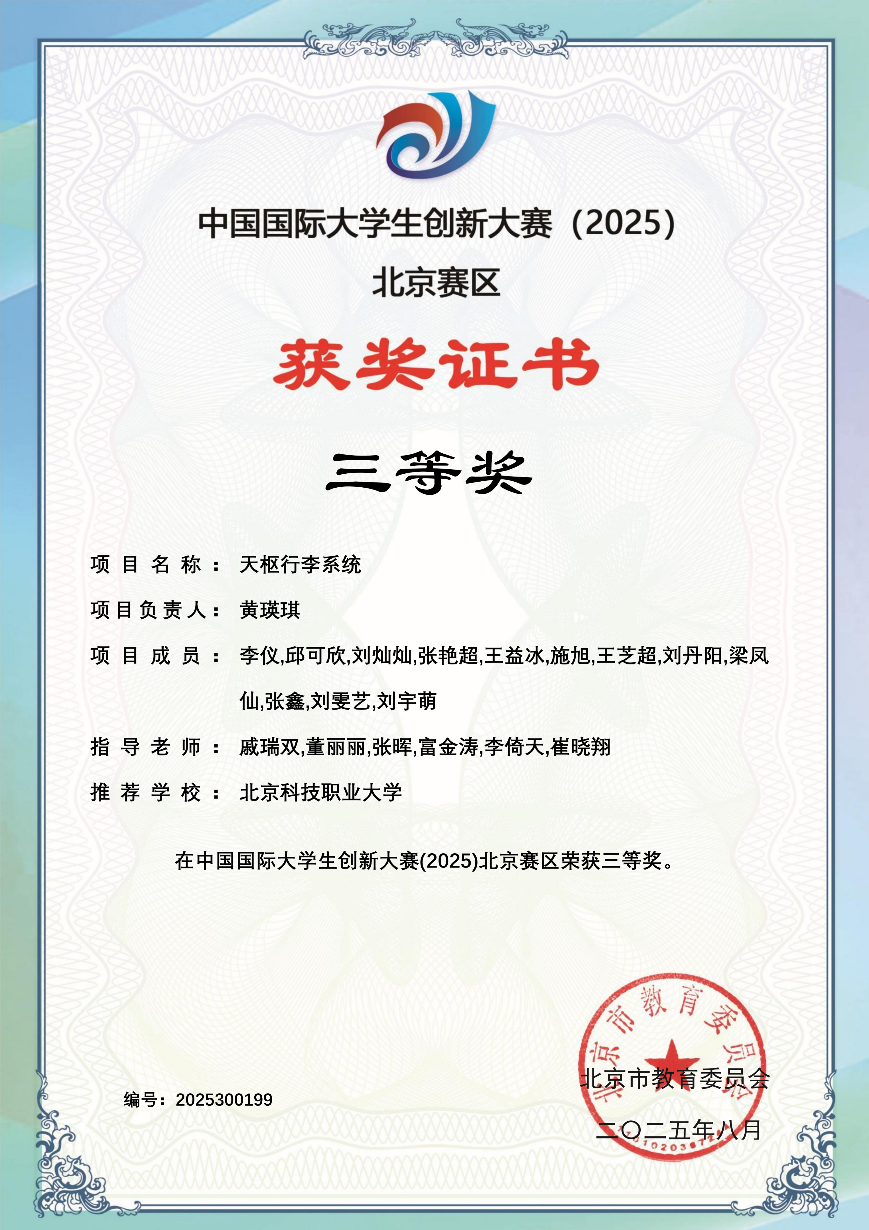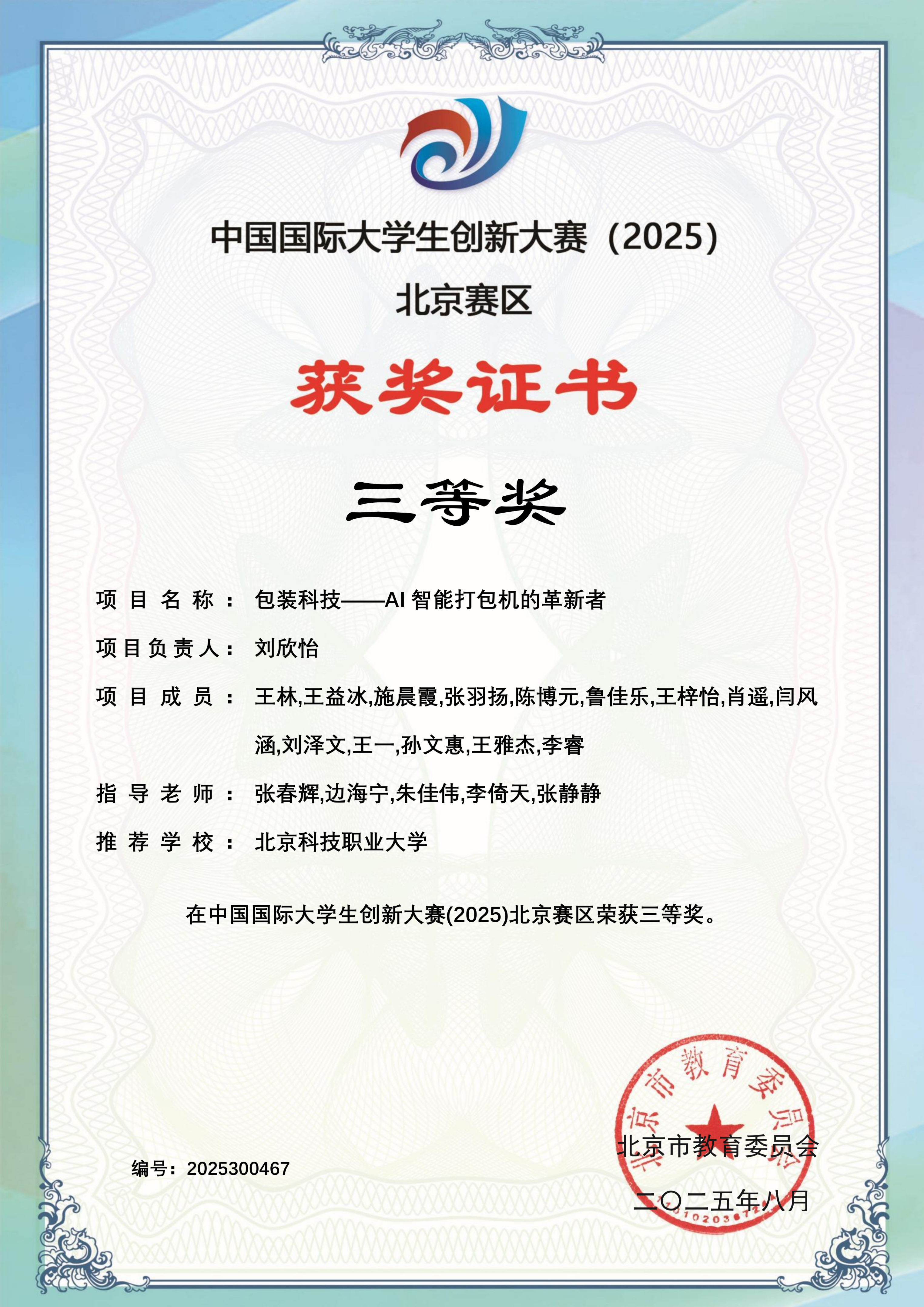 下一条:中国国际大学生创新大赛(2025)校赛获奖证书