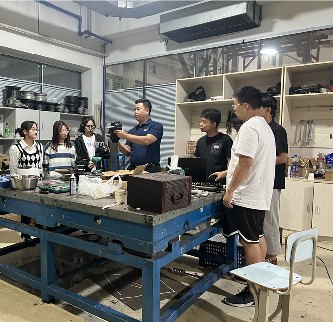 汽车工程学院学生党支部书记王晗璐沿着展板内容,生动详细的讲解了新中国汽车工业发展、一汽“红旗”发展历史、汽车工程学院的创建历程、校企合作以及科研成果的建设情况,充分展现了汽车工程学院建设发展所取得的巨大成就。在综合办张铮同志的带领下,参观了汽车工程实训教室。有幸看到汽车学生社团组装比赛赛车的实际操作过程,并与学生进行了交流探讨,亲自感受到汽车科技魅力。