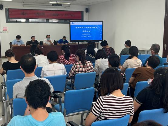 2022年9月16日,经济管理学院召开了新学期师德师风教育大会。全体班子成员及教职工参加会议。党总支书记崔靖宇主持大会。