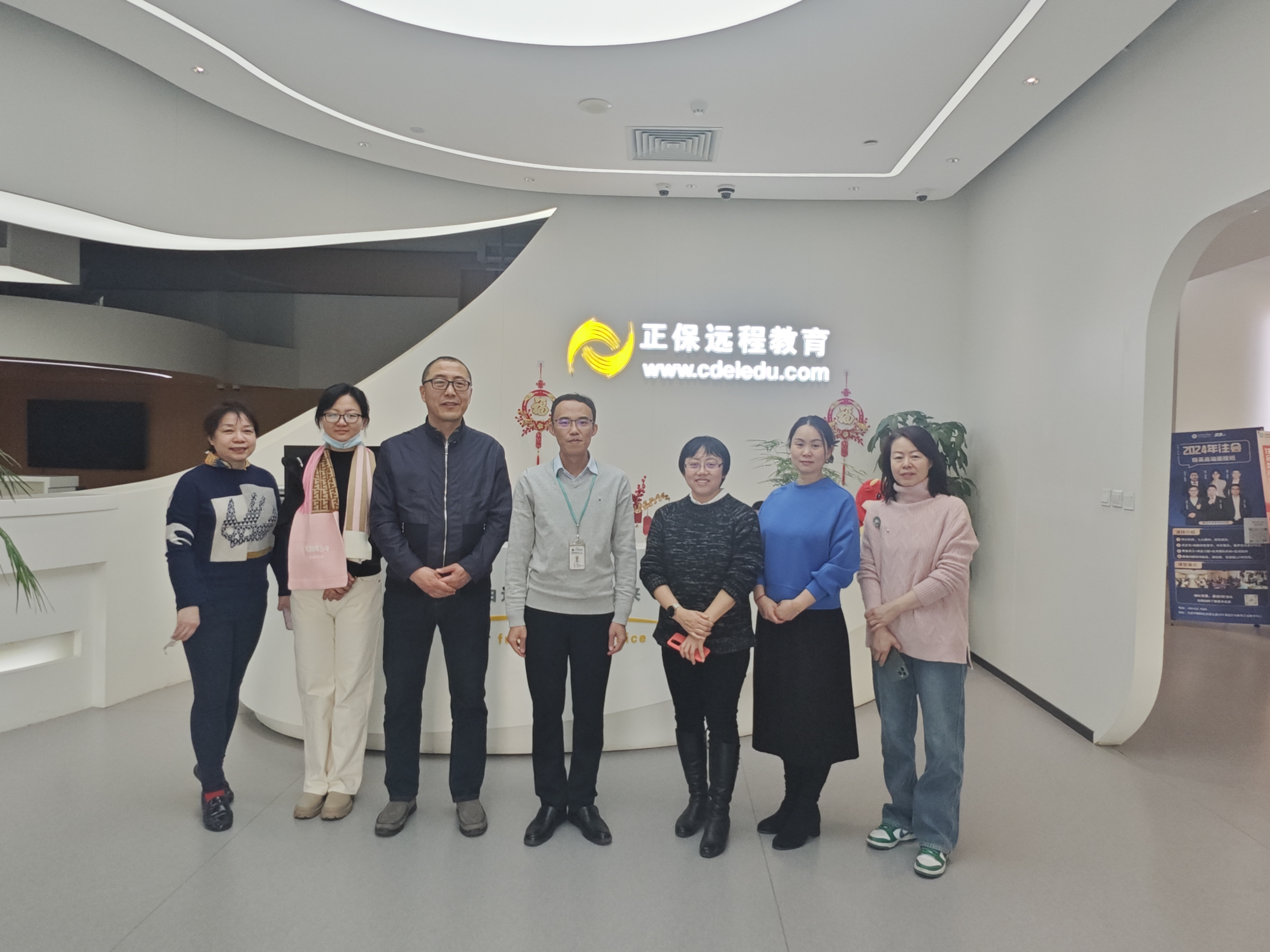 戚瑞双一行在东大正保助理总裁田久学的带领下,实地参观了正保课程建设中心,详细了解了正保集团业务领域和发展历程,体验了课程设计、录制与剪辑的过程,深入感受了人工智能、虚拟现实、融媒体等先进技术在课程建设中的应用。