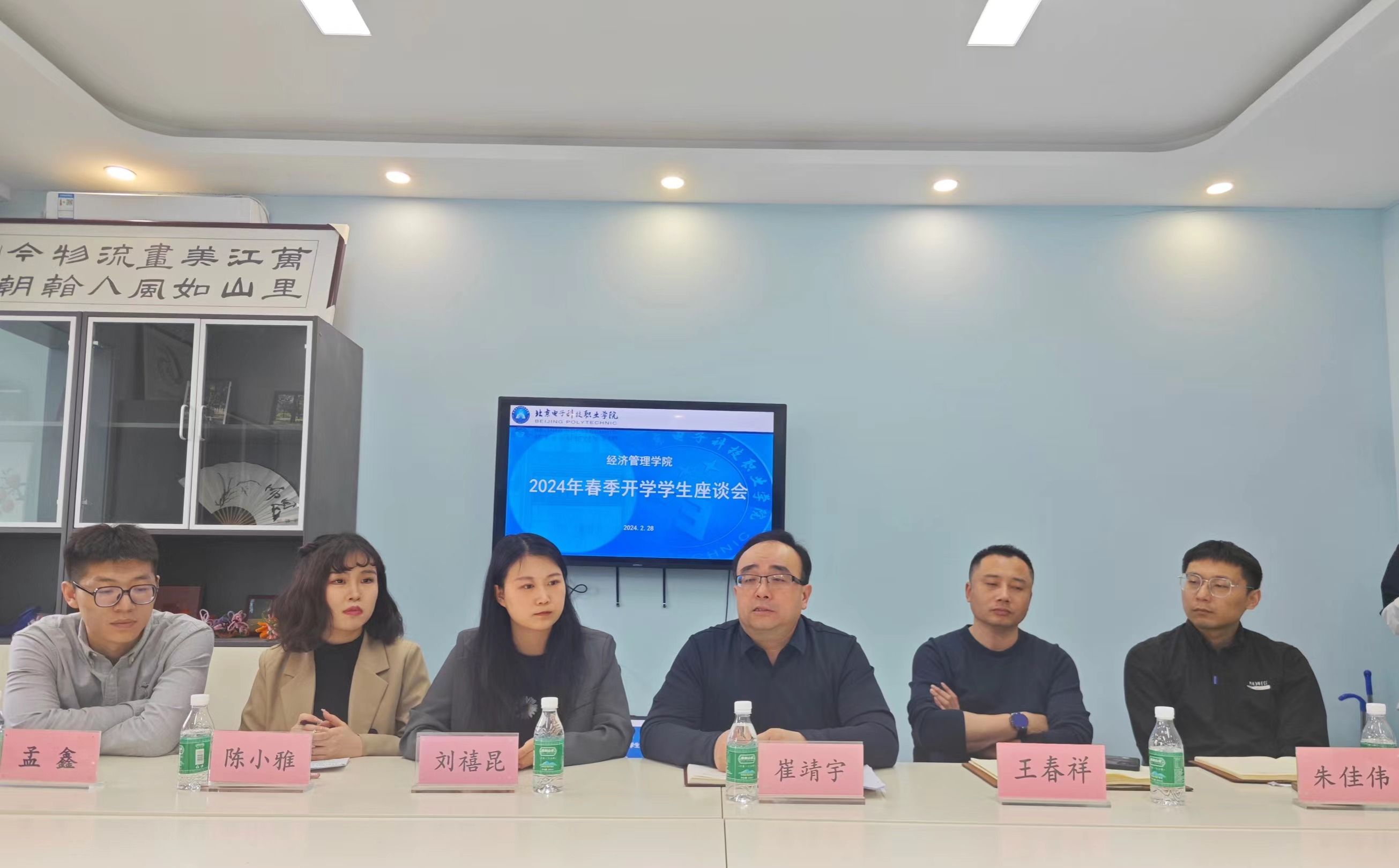 为充分了解新学期学生思想动态,倾听学生切实需求,进一步拓宽与学生的交流沟通渠道,更好助力学生成长成才,2月28日,经济管理学院在一站式社区党团工作站召开2024年春季学期开学座谈会。学院党总支书记崔靖宇,副书记王春祥,全体辅导员和16名学生干部代表、少数民族学生代表、毕业年级学生代表参加座谈会。