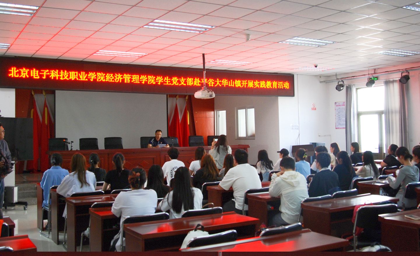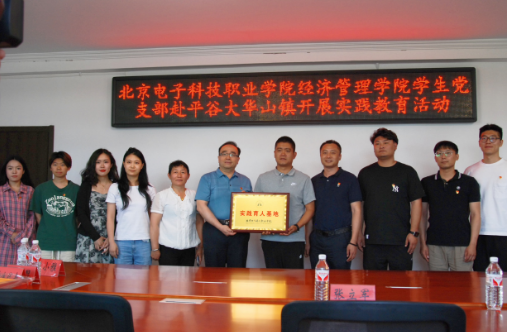平谷区大华山镇镇党委副书记王洪亮、大华山村书记张立军对经济管理学院师生的到来表示欢迎。校镇双方代表在大华山村会议室召开了红色“1+1”对接会,就镇校联合开展人才培养合作事宜进行深入交流,就大桃产业发展相关事宜进行了深入探讨。座谈会上,崔靖宇代表经管学院向大华山镇进行授牌,确定其为经济管理学院实践育人基地。