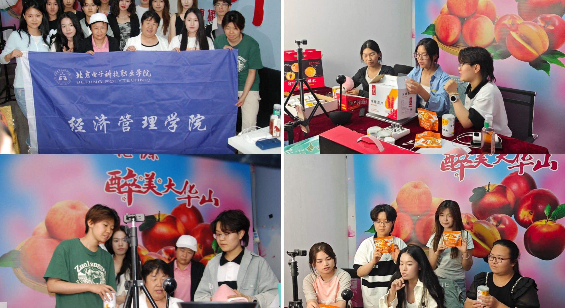 随后,学生党支部发挥电子商务专业优势,让同学们通过抖音直播、京东直播等方式帮助大华山镇销售特色农副产品。同时,师生对村民进行了电商知识和技能培训,让村民们进一步提高电商技能,更好地开展电商销售。