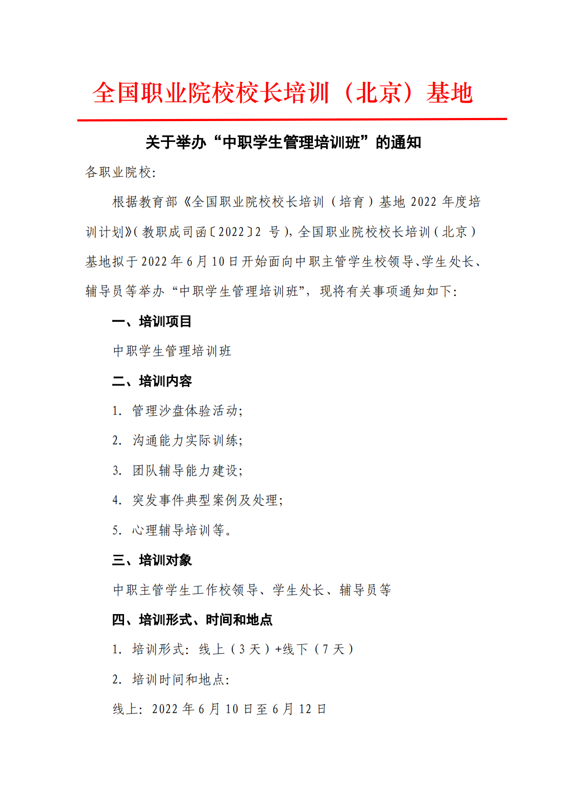 关于举办“中职学生管理培训班”的通知
