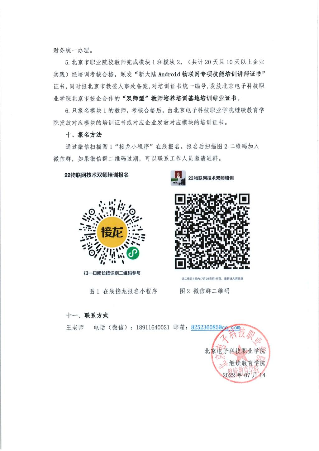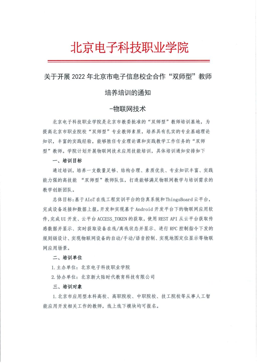 关于开展2022年北京市电子信息校企合作“双师型”教师培训培训的通知—物联网技术