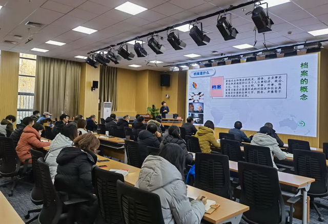 本次培训邀请学校党政综合办公室档案管理科科长王琴老师作了《档案管理工作专题报告》。王琴老师在报告中从档案是什么、档案的作用、哪些材料需要归档以及归档工作流程四个方面详细为大家解读了档案管理工作的主要职责与内容,并结合工作情况,以学校档案管理工作中发生的实际案例为大家讲解了档案工作的重要意义和作用。