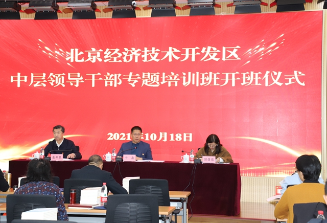 本次培训是中共北京市委经济技术开发区工委党群服务中心为进一步加强北京经济技术开发区(以下简称“经开区”)中层领导干部队伍建设,适应经开区体制机制改革和高质量发展的需要,全面提升干部理论素养、党性修养和履职能力,对经开区工委、管委会近期新提拔的中层领导干部正职,部分党政领导干部及中小学学校书记、校长开展的一次培训。