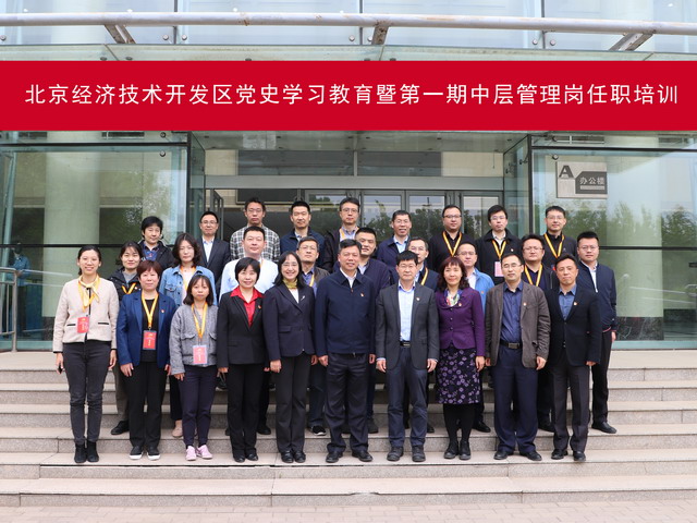 仪式结束后,北京经济技术开发区“学党史、明初心、知使命”党史学习教育暨第1期中层管理岗任职培训班开始培训,北京市委党校党史党建部主任李明伟教授讲授培训第一课——“中国共产党的奋斗历程与基本经验”,学校领导及处级干部也同时参加了培训。