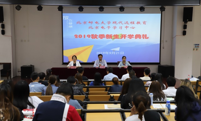 2019年9月21日上午9:00,北京电子科技职业学院校外学习中心2019年秋季新生开学典礼”在亦庄校区经管学院阶梯教室举行。北京电子科技职业学院继续教育学院苏东海院长、刘建平副院长、李育梅老师、北邮网院学生支持服务中心的张文娟老师,以及北京电子学习中心的管理人员、班主任及百余名新生出席了开学典礼仪式。