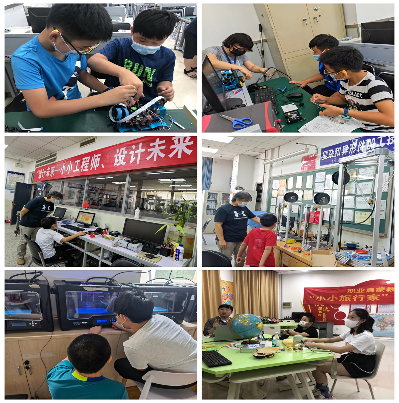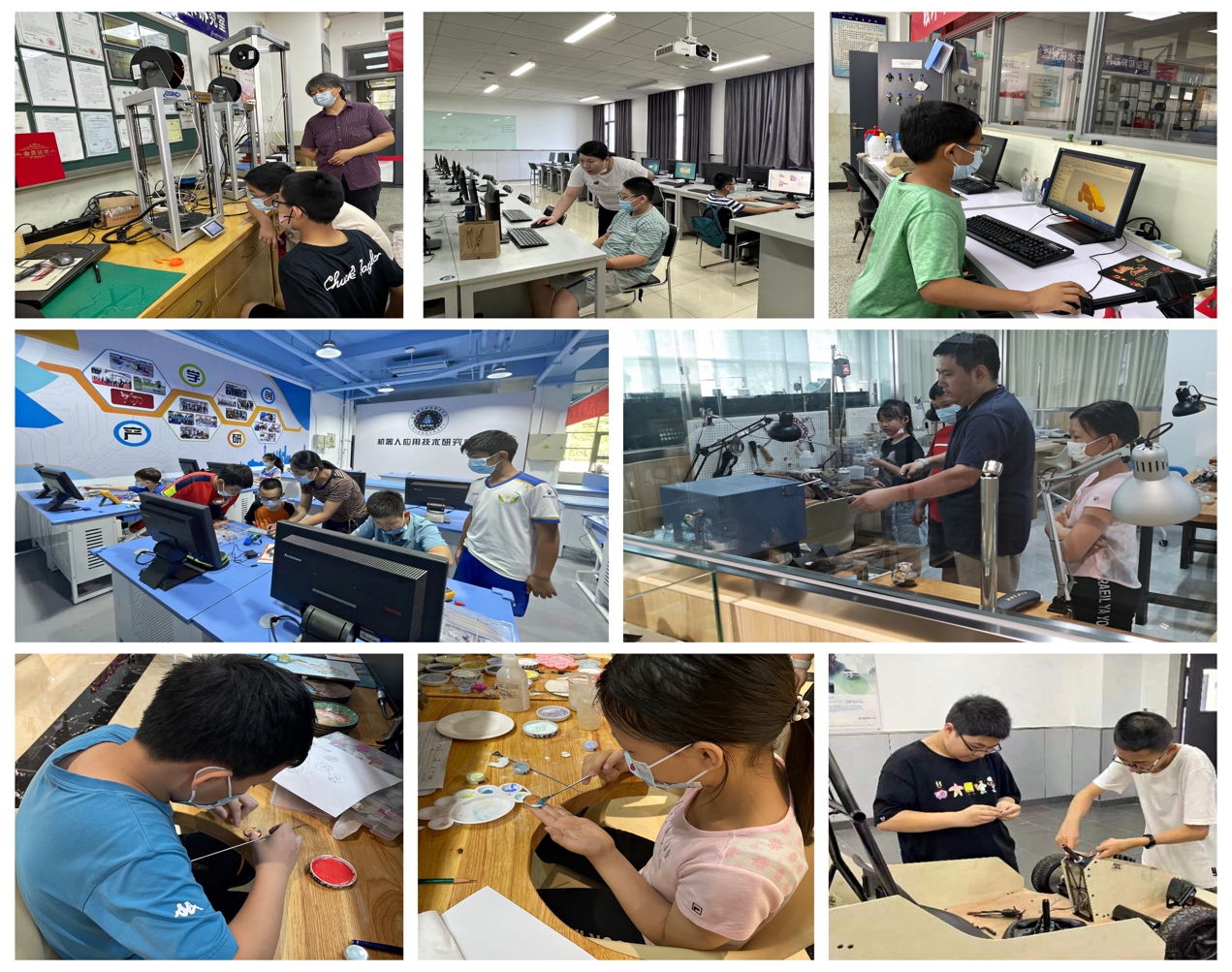 本项目主要面向小学五、六年级及初中一、二年级的学生开展,旨在让学生在实践中学习新知识、激发学生对科学研究和艺术创作等方面的兴趣、提高动手实操能力和科学的思维能力、培养学生的专注力和创造力、启蒙学生的工匠精神,培养学生掌握技能的兴趣爱好和职业生涯规划的意识能力。从课程开发到项目的运行和实施得到了学校机电工程学院、汽车工程学院、电信工程学院、经济管理学院、艺术设计学院的大力支持和配合,共开设了“玉兔号”的月球旅行、设计未来汽车、动感电车梦工场、电动卡丁车制造与竞赛、人工智能小汽车设计制作、Scratch趣味编程、小小旅行家、非遗景泰蓝小工匠、少儿水墨、少儿书法、认识油画、传统手工蓝印和陶泥手作造型体验等14个子项目,共有30余名骨干教师、技能大师参与了课程的设计与授课,带领学员们度过了9天不一样的暑假生活,得到了学员和家长们的一致好评。