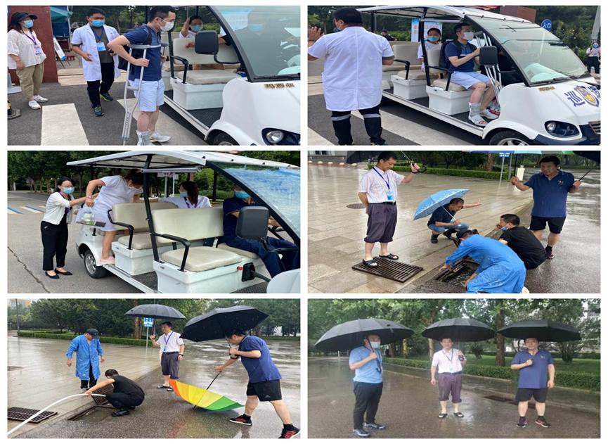 学校考试期间的各项举措,有力保障了考试工作顺利开展。为了帮助行动不便及有特殊情况的考生按时到达考场,学校保卫处准备了多辆校园电瓶车提供考场区间摆渡服务;考试期间遭遇极端暴雨天气,考生专用通道严重积水,学校后勤基建处第一时间启动响应机制,迅速到达现场开展排水疏通工作;继续教育学院工作人员及各二级学院考务人员热心为考生解决各种问题。此次考试精心的组织服务工作,得到了市卫健委、市卫生人才考评中心、朝阳区卫健委、朝阳区卫生人才中心、经开区社会事业局领导及工作人员的一致好评。