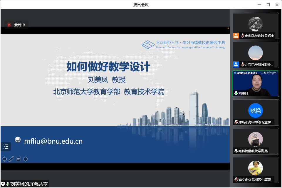 北京师范大学教育学部教育技术学院教授、博士生导师刘美凤作了题为《如何做好教学设计》的专题报告。刘教授从分析教育教学的工作流程入手,结合学生核心素养培养、多元智能协调发展与培养、学习理论的流派分析、教学要素的合理搭配、教学模式新变化等内容详细讲解了教学设计的5个基本原则,指出教学设计要尊重学科专业本质及其发展规律、尊重教育教学规律和学生学习的心理机制。刘教授的报告内容丰富,对提高教师的教学设计能力和教育教学能力,促进学生全面发展有很大的帮助。