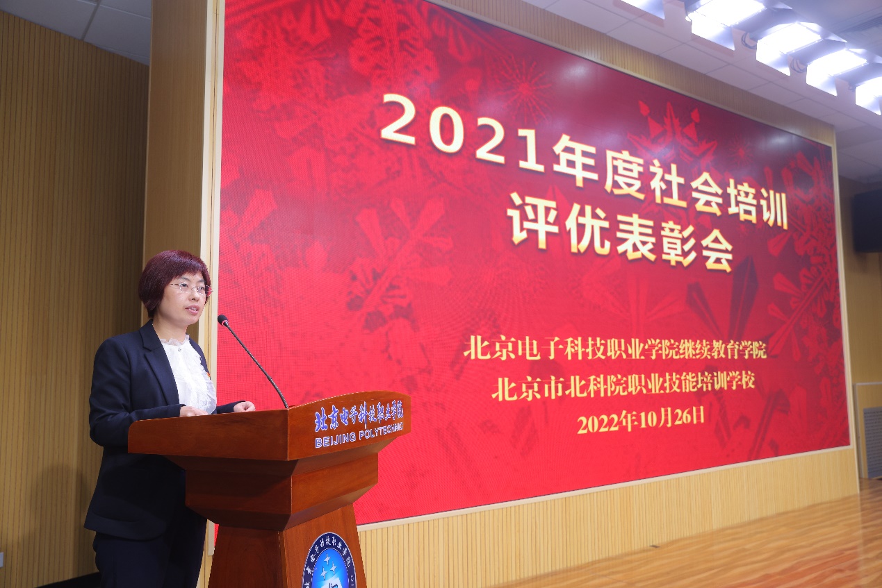 辛秀兰在讲话中强调,这是学校首次召开的社会培训工作表彰会,意义重大。她充分肯定了BEAT3652021年社会培训取得的丰硕成果,同时对社会培训工作提出了要求。一是要克服困难、齐心协力,努力完成学校“十四五”工作、“双高计划”、提质培优行动计划等各项重点任务;二是要创新思路、创新举措,为社会培训工作提质增量;三是要群策群力、共谋发展,抓住职业教育前所未有的重大发展机遇,开新局、抢新机、出新绩。