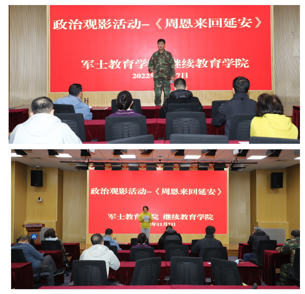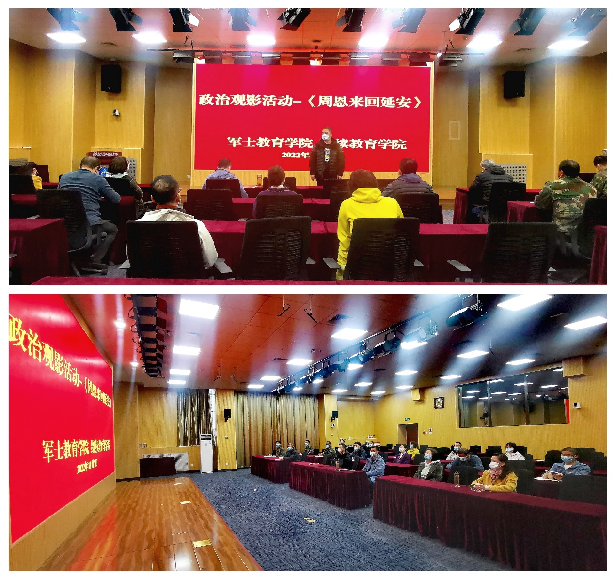 为深入学习领会党的二十大精神和习近平在瞻仰延安革命纪念地时的重要讲话精神,弘扬伟大建党精神和延安精神,2022年11月7日上午,继续教育学院党支部、军 士教育学院党支部联合开展了《周恩来回延安》观影活动。