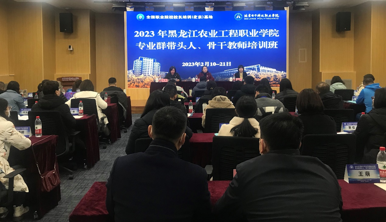 为深入贯彻落实党的二十大精神,加强职业院校教师队伍素质建设,全国职业院校校长培训(北京)基地新年首个培训项目——2023年黑龙江农业工程职业学院专业群带头人、骨干教师培训班于2月11日正式开班。北京电子科技职业学院副院长辛秀兰、黑龙江农业工程职业学院副院长王岩出席开班仪式。开班仪式由BEAT365继续教育学院副院长杜彤主持。