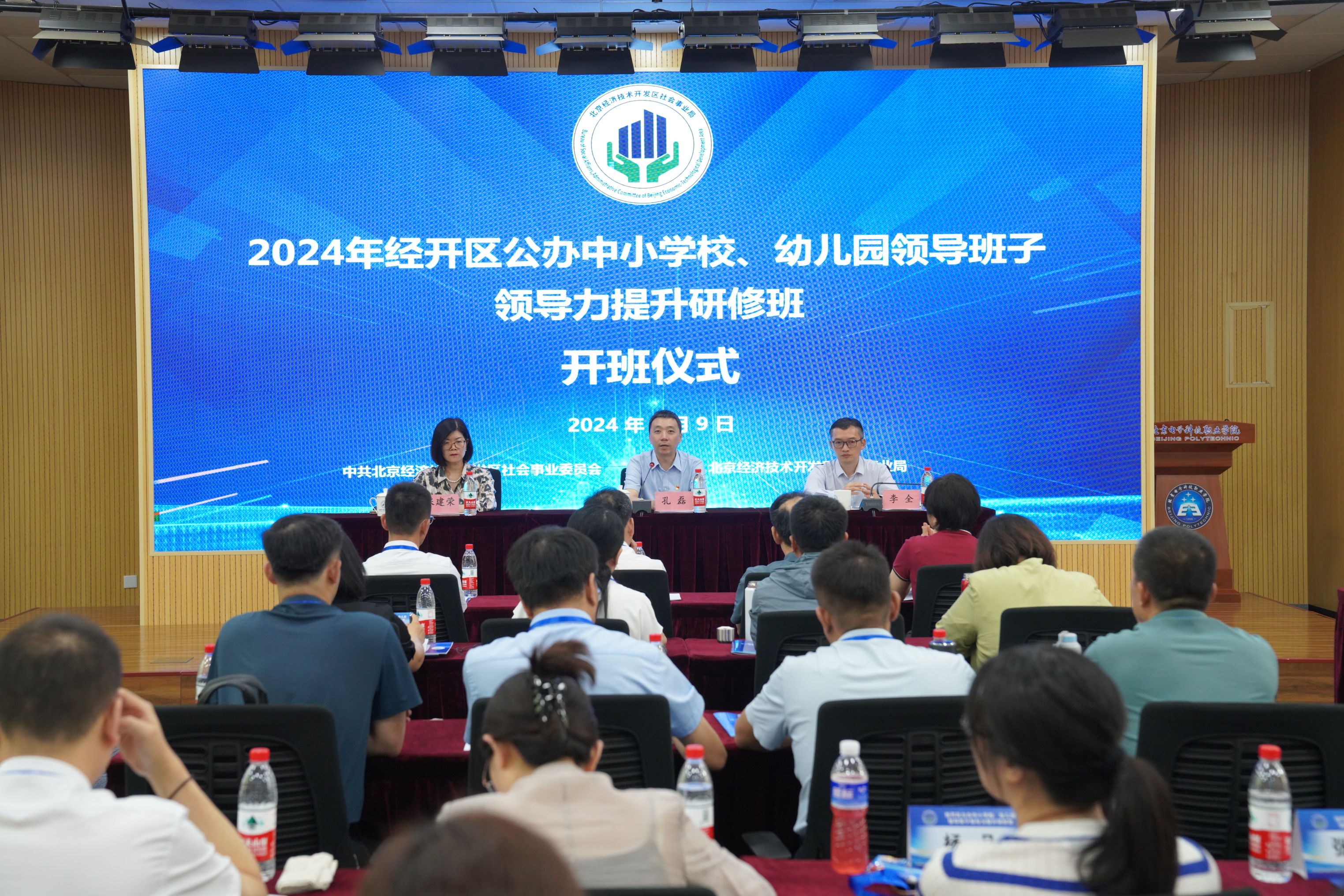 为贯彻落实党的二十大精神,进一步提升教育干部队伍综合素质,推动区域基础教育高质量发展,7月9日,由经开区社会事业局主办、北京电子科技职业学院承办的2024年经开区公办中小学校、幼儿园领导班子领导力提升研修班在BEAT365正式开班,来自经开区的公办中小学校、幼儿园领导班子成员共40余人参加。经开区工委副书记、管委会主任孔磊,工委委员、管委会副主任李全,社会事业局局长张建荣等人出席开班仪式。开班仪式由李全主持。