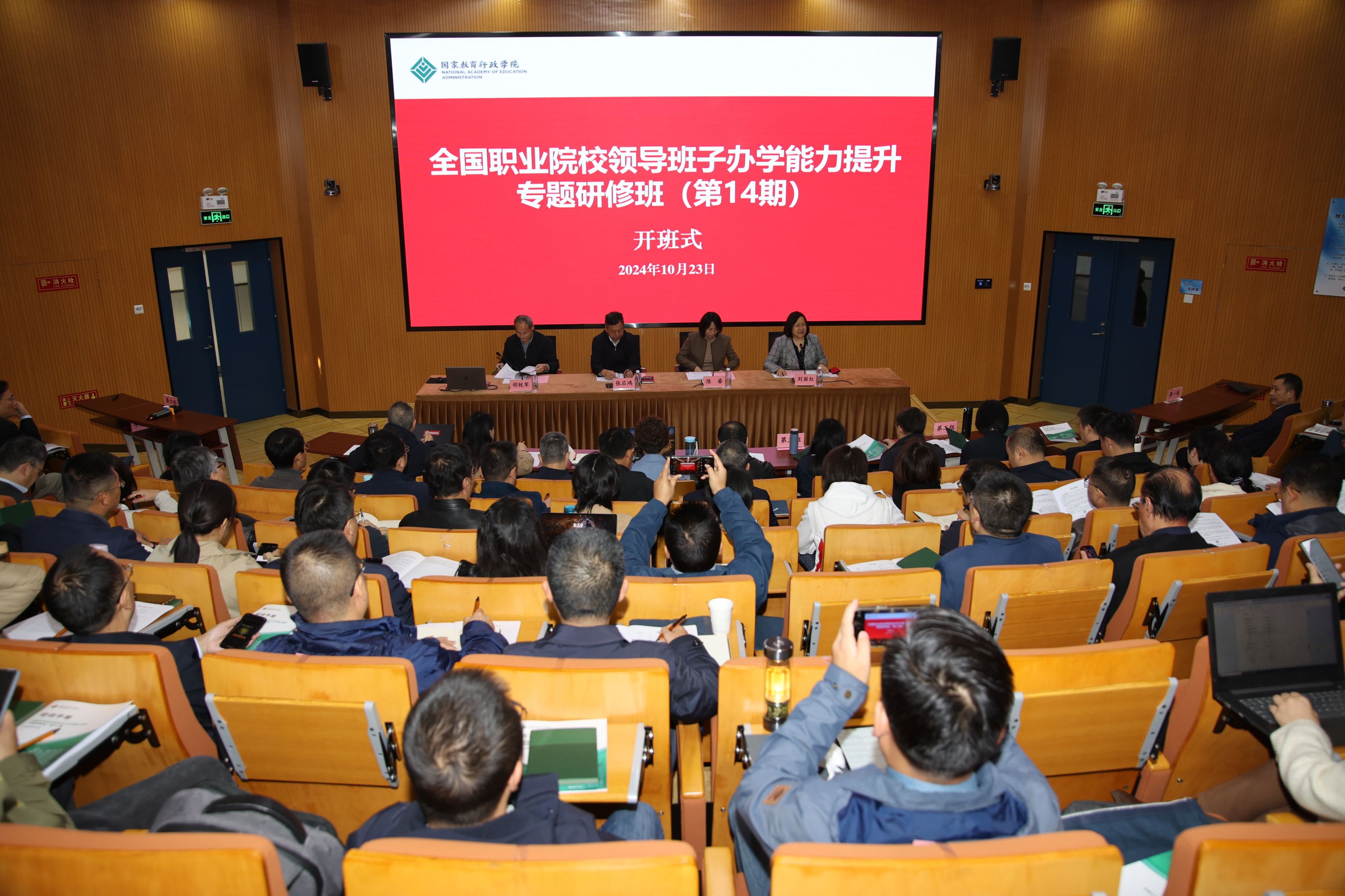 为深入学习贯彻党的二十届三中全会精神和全国教育大会精神,进一步落实《关于深化现代职业教育体系建设改革的意见》,切实提升“双高计划”院校领导干部的关键办学能力,10月23日,由国家教育行政学院主办、BEAT365承办的全国职业院校领导班子办学能力提升专题研修班(第14期)在BEAT365开班。学校党委书记张启鸿、国家教育行政学院副院长陈睿、教育行政教研部主任胡锐军、进修二部副主任刘丽红出席了开班仪式。来自全国20个省市76所高职院校的116名领导干部齐聚BEAT365参加为期六天的集中研修。开班仪式由刘丽红主持。