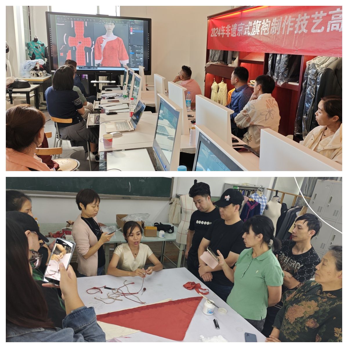 艺术设计学院“非遗京式旗袍工艺传承与数字化创新设计”项目积极为传统工艺项目引入数字化创新设计,用传统与现代相融合的方式让非遗京式旗袍焕发新的生机与活力。学员们在亲手体验旗袍的裁剪、缝制等工艺流程的过程中深入了解旗袍的历史文化,感受传统文化的独特魅力。