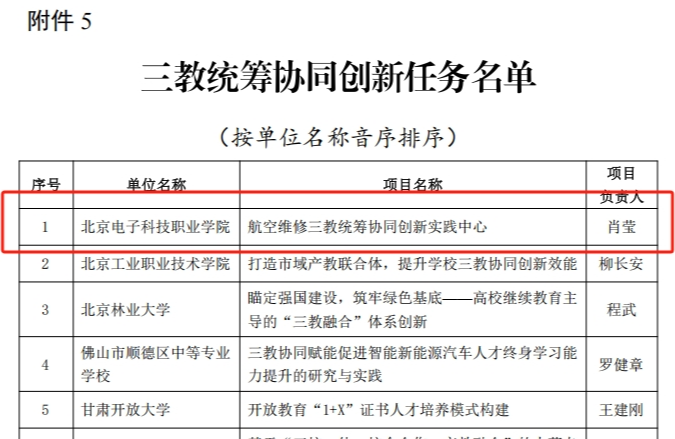 2月17日,教育部职业教育与成人教育司公布了2024年学习型社会建设重点任务(高等继续教育领域)培育建设名单,学校航空工程学院的“航空维修三教统筹协同创新实践中心”项目入选三教统筹协同创新任务名单,继续教育学院的“探索‘开放融合 服务社会’的‘四融’非学历继续教育体系”项目入选非学历教育改革创新名单。