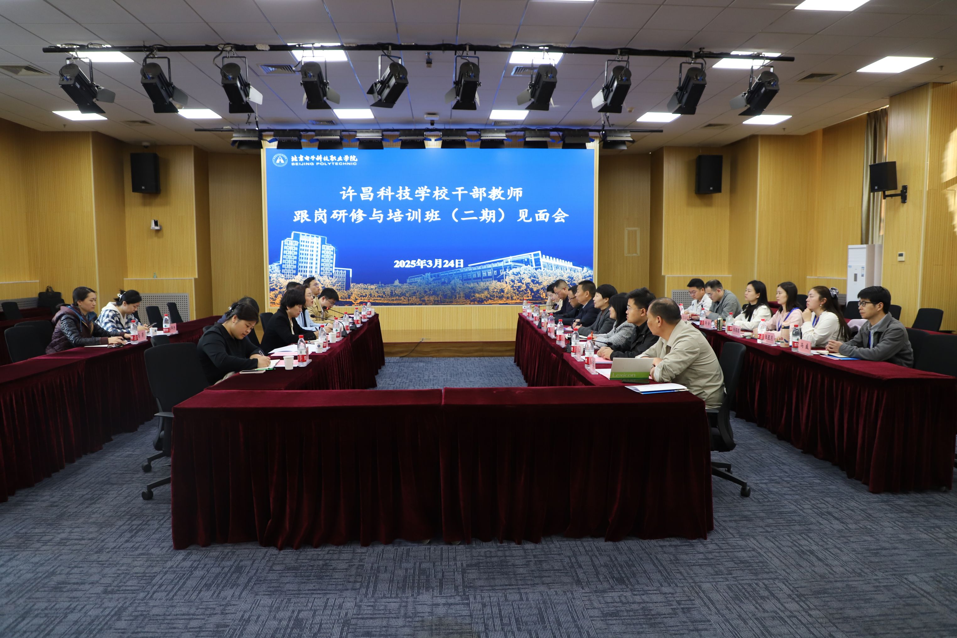 此次见面会标志着许昌科技学校干部教师为期 7 天的跟岗研修正式拉开帷幕,许昌科技学校干部教师将深入北京电子科技职业学院的教学、管理一线,参与教育教学活动、教研活动、课堂观摩等,围绕专业建设、教学管理、学生管理等方面全面学习学校先进的办学理念和实践经验。