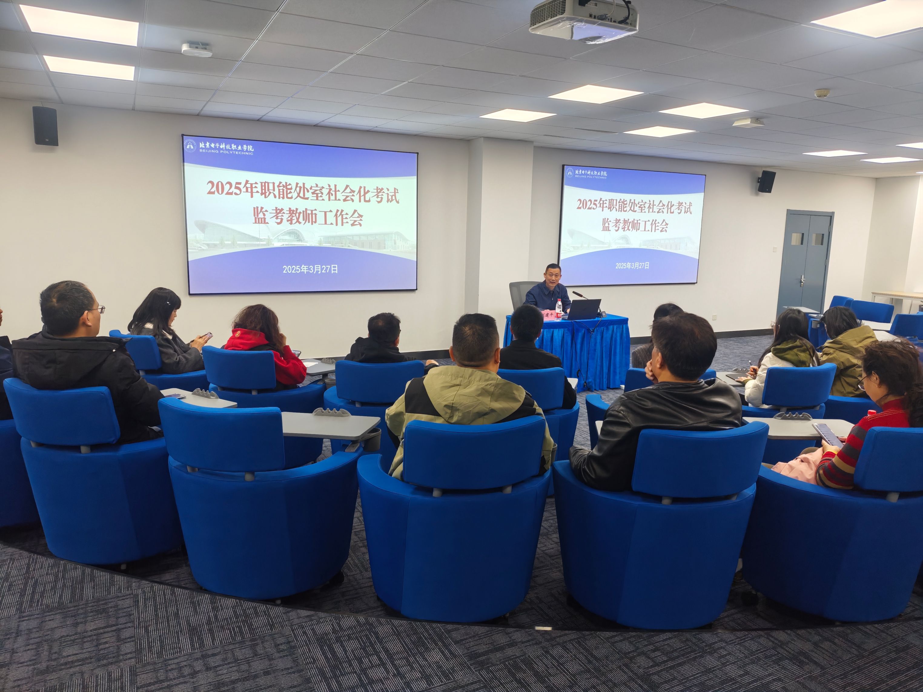 为加强与职能处室监考老师的交流,进一步规范监考工作,共同提高社会化考试监考工作质量,3月27日,继续教育学院召开了2025年职能处室社会化考试监考教师工作会。继续教育学院副院长刘建平、相关工作人员,各职能处室社会化考试监考教师,各二级学院社会化考试负责教师参加会议,会议由刘建平主持。