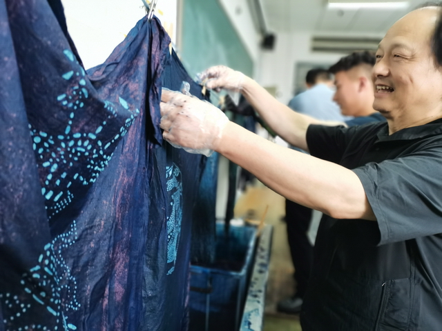 学习刻板、上桐油、刮浆、染色、刮白、清洗等工艺流程,学习蓝印花布古老技艺。
