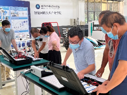 2022年7月19日至29日,汽车工程学院克服重重困难,举办为期2周的线下培训。来自北京市怀柔区职业学校、北京市房山区第二职业高中、北京汽车技师学院、北京市门头沟区中等职业学校、北京市城市管理高级技术学校、北京铁路电气化学校、北京交通运输职业学院等中、高职院校的20余名新能源汽车技术专业骨干教师参加了此次培训。