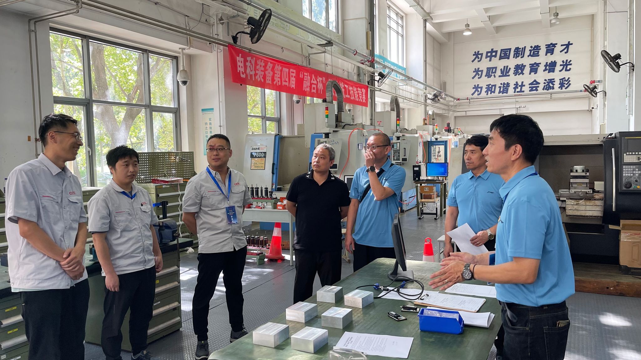 汽车工程学院基础工程训练中心承办比赛,教师们积极组织、充分准备,调试比赛所需装配钳工设备、数控铣工设备,并与参赛成员充分沟通,召开赛项说明会、设备培训会、学生志愿者任务布置会、裁判会等,确保比赛顺利进行。